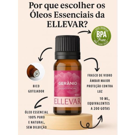 ENVIO EM ATÉ 24H 📦💨 Bem-vindo(a) à Ellevar Óleos Essenciais, onde cada óleo é tratado como uma experiência própria e exclusiva da nossa marca, criada para ir além de um produto comum. Trabalhamos com óleos 100% puros e naturais, obtidos de matérias-primas selecionadas com rigor, provenientes de colheitas nacionais e importadas de alta qualidade. Aqui, cada etapa importa: desde o cuidado no preparo, a proteção do vidro âmbar (que resguarda o óleo da luz e reduz a oxidação, preservando sua pureza e estabilidade), o gotejador preciso, até o envio rápido, embalado com delicadeza e carinho. Você recebe não só um óleo essencial, mas um ritual aromático pensado para Ellevar corpo, mente e ambiente. Elleve sua energia, acolha seus sentidos e transforme sua rotina com a aromaterapia da Ellevar 🌿 Óleo Essencial Ellevar de Gerânio África (Pelargonium Graveolens) - 10ml Método de Extração: Destilação a Vapor Notas florais equilibradas, muito apreciado em práticas de autocuidado e ambientes harmoniosos. Aroma delicado e envolvente, despertando sensibilidade e atenção aromática. Cria momentos aromáticos equilibrados e poéticos. Topo: floral fresco | Corpo: floral levemente adocicado e verde suave | Base: macia e delicada Óleos essenciais puros, concentrados, naturais e veganos. Livre de aditivos, conservantes ou diluição (substâncias que poderiam alterar a autenticidade aromática da planta e comprometer a experiência da aromaterapia). Cada frasco contém apenas o óleo essencial em seu estado erdadeiro, preservando a potência, a integridade e o aroma natural que a planta oferece. Aromaterapia é presença, é pausa, é respiro. Elleve seu bem-estar e permita-se sentir a experiência que só a Ellevar entrega. 🌿 Ellevar Óleos Essenciais – Conecte-se à sua própria natureza. Autenticidade não é detalhe: é identidade. Obrigada por escolher uma marca que valoriza criação própria, qualidade real e propósito em cada frasco. Uso seguro e dicas práticas: - Uso seguro na pele: diluir de 1 a 2% em óleo vegetal (aprox. 3 a 6 gotas para cada 10 ml de óleo 100% vegetal carreador). - Ideal para difusores e difusores elétricos, aromatizadores de ambiente e sprays caseiros. - Aromatizador ultrassônico: utilize de 5 a 10 gotas, ajustando conforme o tamanho do ambiente e sua preferência de intensidade. Ambientes maiores podem pedir um pouco mais, e ambientes menores funcionam bem com menos gotas. - Perfeito para banhos aromáticos, massagens, sabonetes e produção de velas, criando experiências sensoriais únicas. Transforme pequenos momentos em rituais aromáticos envolventes. Conservação: - Conservar sempre em temperatura ambiente e ao abrigo da luz, em sua embalagem original.