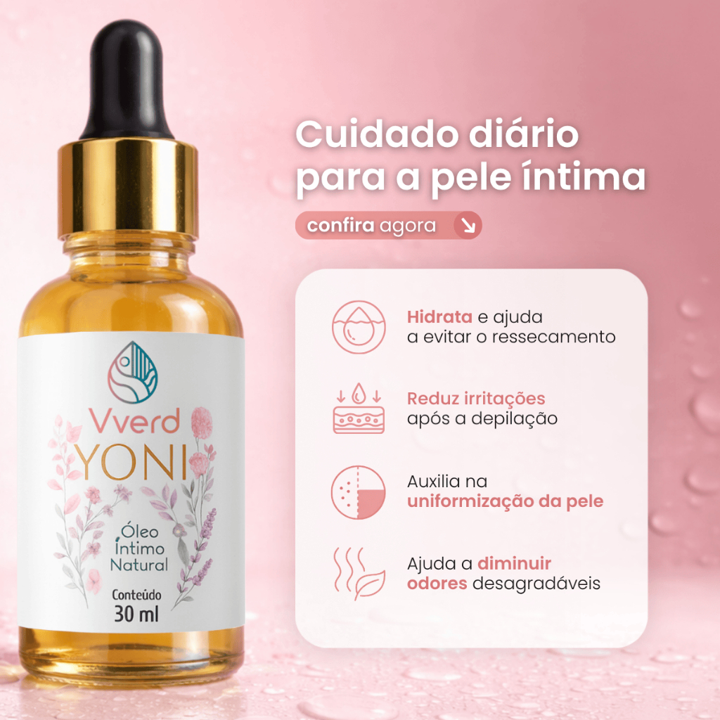 Óleo Íntimo Yoni – Hidratação Profunda e Controle Natural de Odores Sua região íntima merece um cuidado especial! O Óleo Íntimo Yoni foi desenvolvido para proporcionar hidratação intensa e equilíbrio natural, prevenindo o ressecamento e desconfortos do dia a dia. Com uma fórmula 100% natural e vegana, ele cria uma barreira protetora que mantém a pele macia, saudável e bem cuidada. 💧 Hidratação Profunda e Natural O Yoni age diretamente na pele, restaurando a umidade e prevenindo a sensação de ressecamento. Ideal para o uso diário, ele proporciona conforto imediato e um toque sedoso sem deixar resíduos oleosos. 🌿 Controle de Odores com Ingredientes Naturais Os óleos essenciais presentes em sua composição ajudam a equilibrar o pH e a reduzir odores indesejados de forma natural, sem mascarar com perfumes artificiais. O resultado? Uma sensação prolongada de frescor e bem-estar. ✔ 100% natural e seguro para o uso diário ✔ Sem perfume, sem parabenos e sem ingredientes agressivos ✔ Fórmula vegana e livre de testes em animais Experimente o Óleo Íntimo Yoni e descubra o poder da hidratação e do equilíbrio natural! ✨