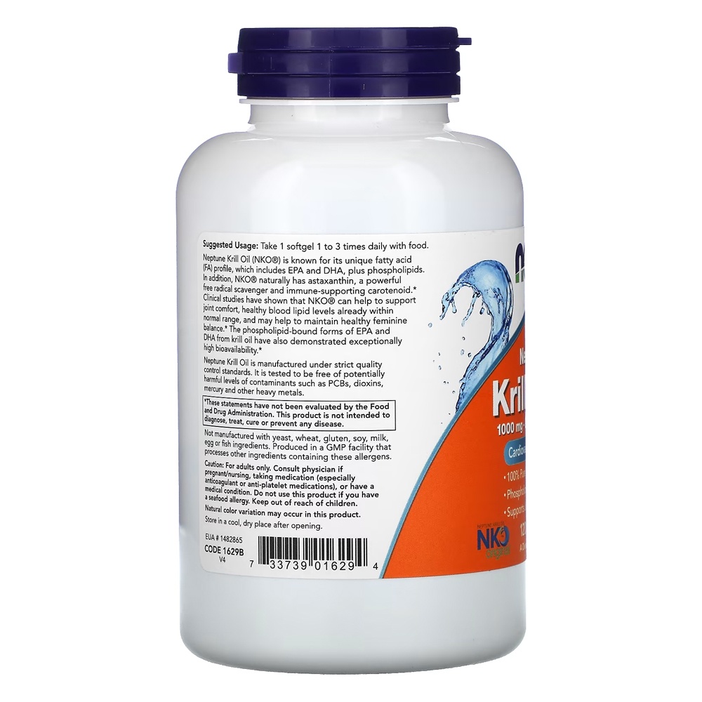 Óleo Krill 1000mg Now Foods Dupla Força 120Sft Importado