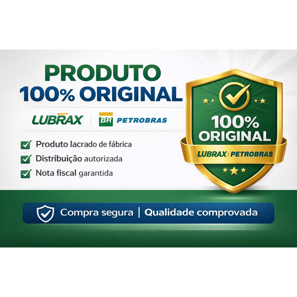 Óleo Lubrax Moto 4T 20W50 Mineral – 1 Litro O Óleo Lubrax Moto 4T 20W50 é um lubrificante mineral de alta performance, desenvolvido especialmente para motores de motocicletas 4 tempos, garantindo proteção eficiente, melhor lubrificação e maior durabilidade do motor. Produzido pela Lubrax / Petrobras, é ideal para uso diário, oferecendo excelente desempenho mesmo em altas temperaturas e condições severas de uso. Benefícios: - Protege contra desgaste prematuro do motor - Excelente estabilidade térmica - Auxilia na limpeza interna do motor - Lubrificação eficiente para motores 4 tempos - Indicado para uso urbano e rodoviário Especificações Técnicas: - Marca: Lubrax - Tipo: Óleo mineral - Viscosidade: 20W50 - Aplicação: Moto 4 tempos - Volume: 1 litro Aplicações: Indicado para motocicletas 4 tempos que recomendam óleo com viscosidade 20W50, como: Motos 125cc, 150cc, 160cc, 200cc e similares (Consulte sempre o manual do fabricante do veículo) Conteúdo da Embalagem: 1 (um) litro de Óleo Lubrax Moto 4T 20W50 Importante: - Produto novo, original e lacrado - Envio rápido e seguro - Nota fiscal emitida conforme legislação vigente