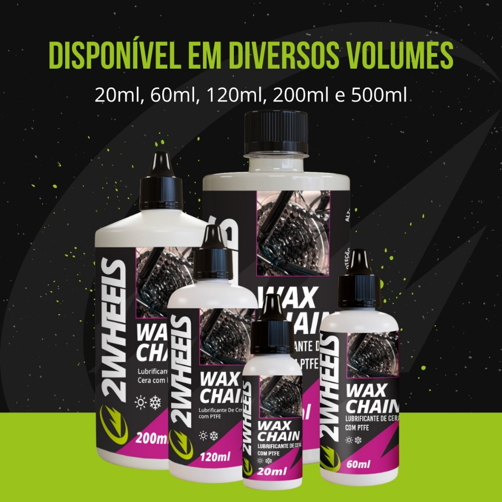 Olá, nós da equipe 2WHEELS, temos o prazer em ajudar você! A 2Wheels é uma marca inteiramente dedicada aos entusiastas do ciclismo! Oferecemos uma linha abrangente tanto para ciclistas quanto para mecânicos! Somos fabricantes comprometidos com as mais avançadas composições do mercado. Nosso propósito é proporcionar a você a conveniência e facilidade de adquirir todos os produtos necessários para sua bicicleta em uma única marca! ------------------------------------------- 2WHEELS - Óleo Lubrificante Cera Corrente Wax Chain 2wheels 120ml O WAX CHAIN é um lubrificante de cera com PTFE, PRONTO USO, isso mesmo, Aplicou, Pedalou. Produto de alta concentração e longa duração, para aplicação em correntes de todos os variados tipos de bicicleta, indicado para todas as modalidades! É aditivado especialmente com foco em performance e desempenho, com padrões rigorosos de controle, como a viscosidade ideal para a penetração nos elos, proteção da corrente contra sujeira, redução de atrito e desgaste da corrente, fornecendo assim um melhor proveito da sua pedalada. *** WAX CHAIN é sintético, atóxico e 100% biodegradável *** Fácil limpeza e remoção *** - Alto rendimento - Proteção contra desgaste - Fácil limpeza - Biodegradável Disponível em embalagens de 20ml, 60ml, 120ml e 200ml e 500ml. ------------------------------------------- Os produtos 2WHEELS são feitos com tecnologia e conhecimento de ponta para fazer a diferença nos seus treinos.