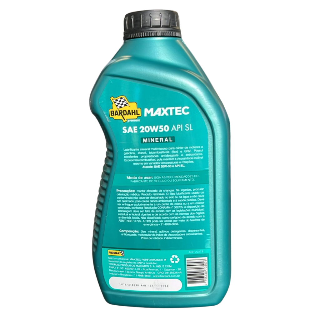 ÓLEO LUBRIFICANTE MINERAL BARDAHL MAX TEC 20W50