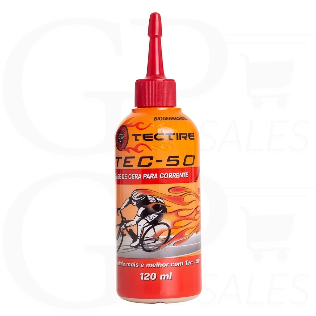 Óleo Lubrificante Tectire TEC-50 Tectire TEC-50 lubrificante sintético biodegradável a base de cera e alto poder de lubrificação com propriedades anticorrosiva e antioxidantes. O Tectire TEC-50 forma uma película macia e resistente que reduz o desgaste da corrente e proporciona um melhor rendimento. Indicado: Terra, asfalto, tempo úmido ou seco. Embalagem: 120ml