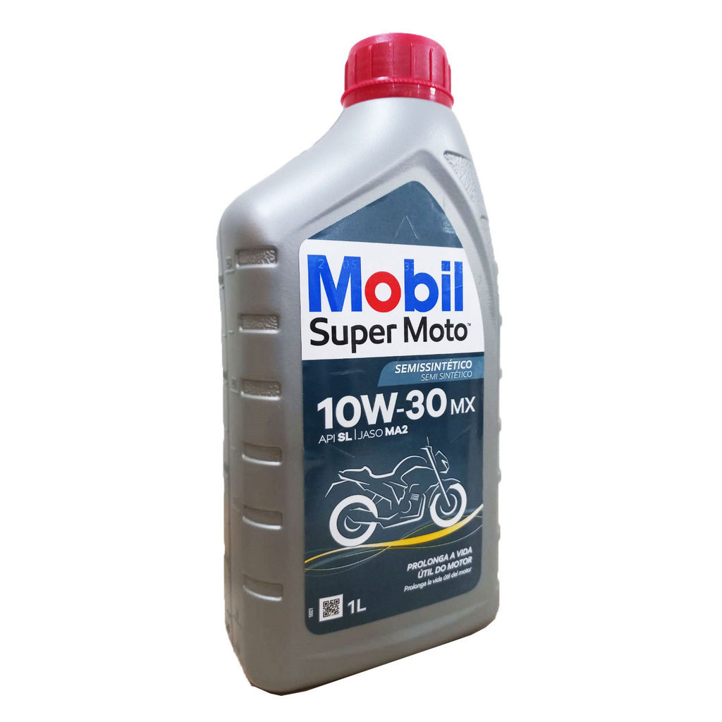 Oleo Mobil Semi Sintético 10w30 1 Litro 4T Mobil Super Moto 4T MX 10W-30 é um óleo semissintético multiviscoso de alto desempenho, desenvolvido e testado para proporcionar efetiva proteção contra o desgaste. Altamente estável aos esforços mecânicos, mantém a viscosidade mesmo em condições severas. Resistente à oxidação, evita a formação de depósitos e proporciona vida mais longa para o motor devido à formação de uma resistente película de lubrificação. Sua composição semissintética e aditivos selecionados fornecem excelente fluidez para reduzir o desgaste do motor na partida, além de proteger a transmissão e a embreagem durante toda operação da motocicleta. Conteúdo da Embalagem: 01 Litro de Óleo Mobil 10W30 Semissintético Especificações: - Aplicação: Lubrificantes para Motor - Qualidade: Mineral - Tipo de motor: 4 Tempos - Viscosidade: 10W30 - Atende ou excede: JASO MA; JASO MA2; API SL. (as mais exigentes classificações mundiais para motores a gasolina.) - cSt à 40°C 71.5. - cSt à 100°C 10.6. - Índice de Viscosidade: (ASTM D 2272): 136. - Viscosidade CCS cP à -25°C (ASTM D 5293): 6210. - Ponto de Fluidez (°C, ASTM D 97): -36. - Ponto de Fulgor (°C, ASTM D 92): 235. - Densidade g/ml à 15°C (ASTM D 4052): 0.8619. - Código de Registro ANP: 16601 Características: - Excelente proteção antidesgaste - Alto índice de viscosidade - lubrificante, o que significa melhor proteção das partes móveis em ampla faixa de temperaturas, resultando em vida mais longa do motor e menores custos de manutenção. - Excepcional proteção antiferrugem - Redução de custos de manutenção devido sua formulação de alto desempenho - A viscosidade do produto fornece a performance ideal mesmo em condições severas de uso. - Proporciona excelente resistência à oxidação, limpeza dos componentes do motor e durabilidade. - Fornece proteção antidesgaste para uma vida longa do motor e da transmissão - Ajuda a manter a limpeza do motor graças à sua formulação especialmente balanceada - Óleo com base super premium que proporciona alta estabilidade de oxidação e volatilidade reduzida - Tecnologia com teor de fósforo reduzido para proporcionar proteção do catalisador - Propriedades de fricção para um desempenho adequado de embreagem - Formulação de alta resistência ao cisalhamento para manutenção do grau de viscosidade Importante: - Recomendamos que a troca seja feita por um profissional de sua confiança! - Ao descartar o produto, tenha o devido cuidado com o meio ambiente.- Em caso de dúvidas, entre em contato através dos nossos canais de atendimento.