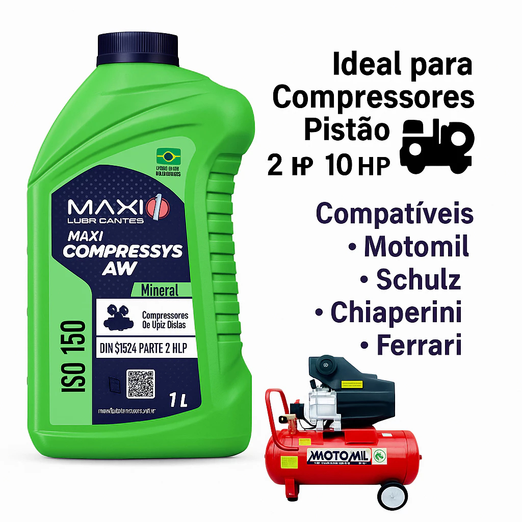Óleo lubrificante recomendado para compressores de ar tipo pistão ISO VG 150. ✓ HLP. ✓ DIN 51524 parte 2. ✓ Excelente separação de água. ✓ Resistência à espuma. ✓ Anti desgaste. * PRODUTO POSSUI DUAS CORES DE EMBALAGENS ( CINZA OU VERDE LIMÃO ) , ENVIO DE ACORDO COM NOSSO ESTOQUE *