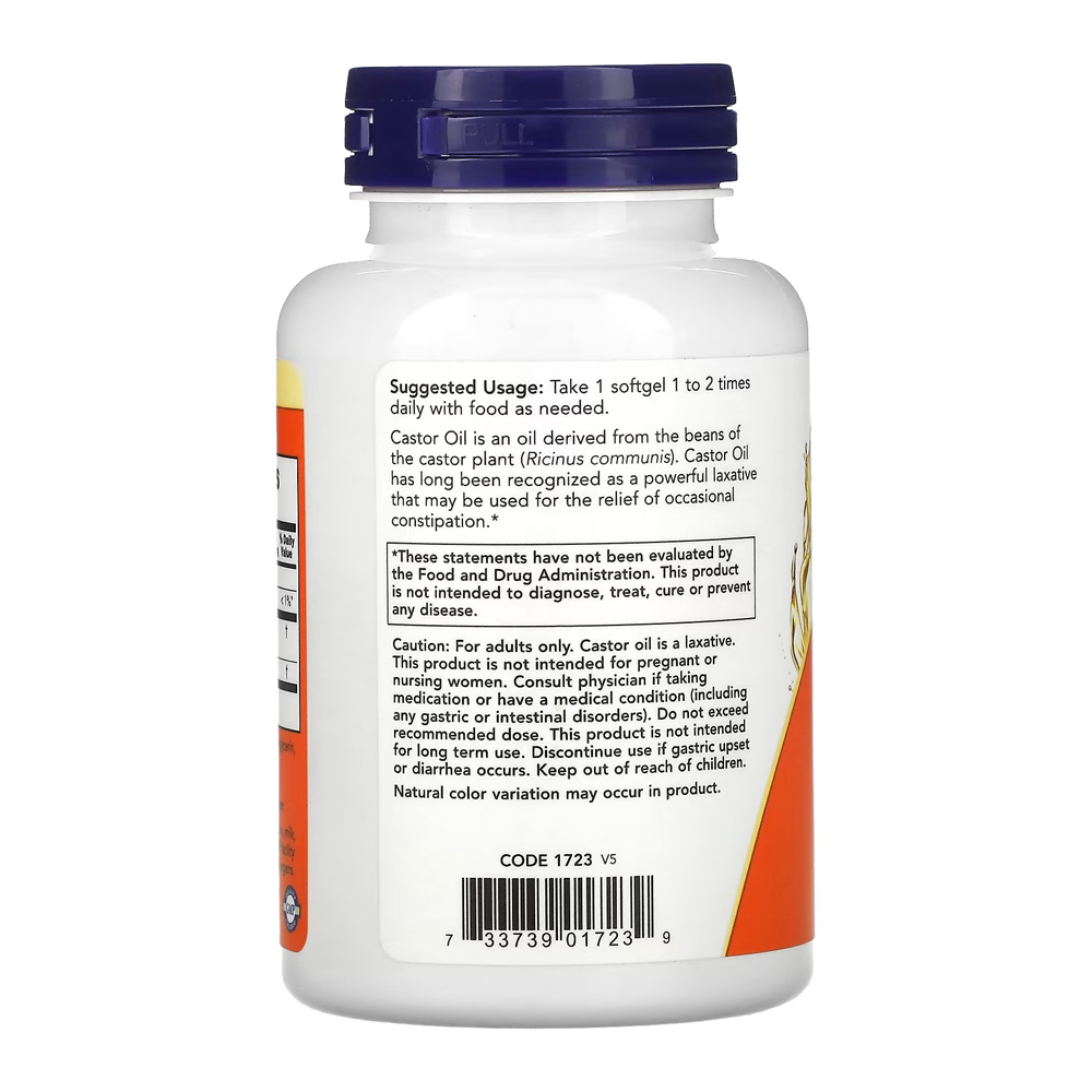 Óleo Rícino Castor 650mg Now Foods 120 Soft + Porta Cápsulas