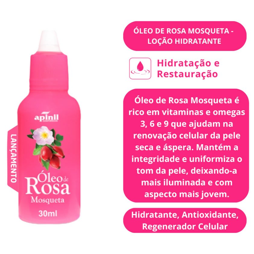 O Óleo de Rosa Mosqueta é um tesouro NATURAL que nutre a sua pele com as propriedades poderosas da rosa mosqueta. Reconhecido por suas qualidades excepcionais, este óleo é a solução para alcançar uma pele notavelmente mais saudável e rejuvenescida. Sua formulação especial é projetada para aumentar a elasticidade, proporcionar hidratação duradoura e promover a suavidade que você merece. Benefícios Principais: * Elasticidade Aumentada: Ajuda a restaurar a elasticidade da pele, mantendo-a firme e jovial. * Hidratação Profunda: A fórmula penetra profundamente para proporcionar hidratação intensa, nutrindo a pele de dentro para fora. * Maciez Irresistível: Sinta a sua pele tornar-se notavelmente mais suave ao toque, conferindo uma sensação de luxo a cada aplicação. * Melhoria da Aparência: O óleo é frequentemente usado para melhorar a aparência de cicatrizes e estrias, proporcionando uma pele mais uniforme e saudável. * Estimulação da Circulação: A massagem suave ao aplicar o óleo não apenas ajuda na absorção, mas também estimula a circulação sanguínea, promovendo uma pele radiante. Modo de Uso: Pode ser aplicado em hidratantes faciais e corporais. Para outras partes do corpo, como braços, pernas e cicatrizes, aplique o óleo massageando suavemente na pele. Para cicatrizes e estrias, aplique o óleo nessas áreas e massageie suavemente. Durante a massagem, aplique o óleo com movimentos suaves para facilitar a absorção e estimular a circulação. Frequência de Uso: Use o Óleo de Rosa Mosqueta diariamente, de uma a duas vezes ao dia, dependendo das necessidades da sua pele. Comece com uma pequena quantidade e ajuste conforme necessário.