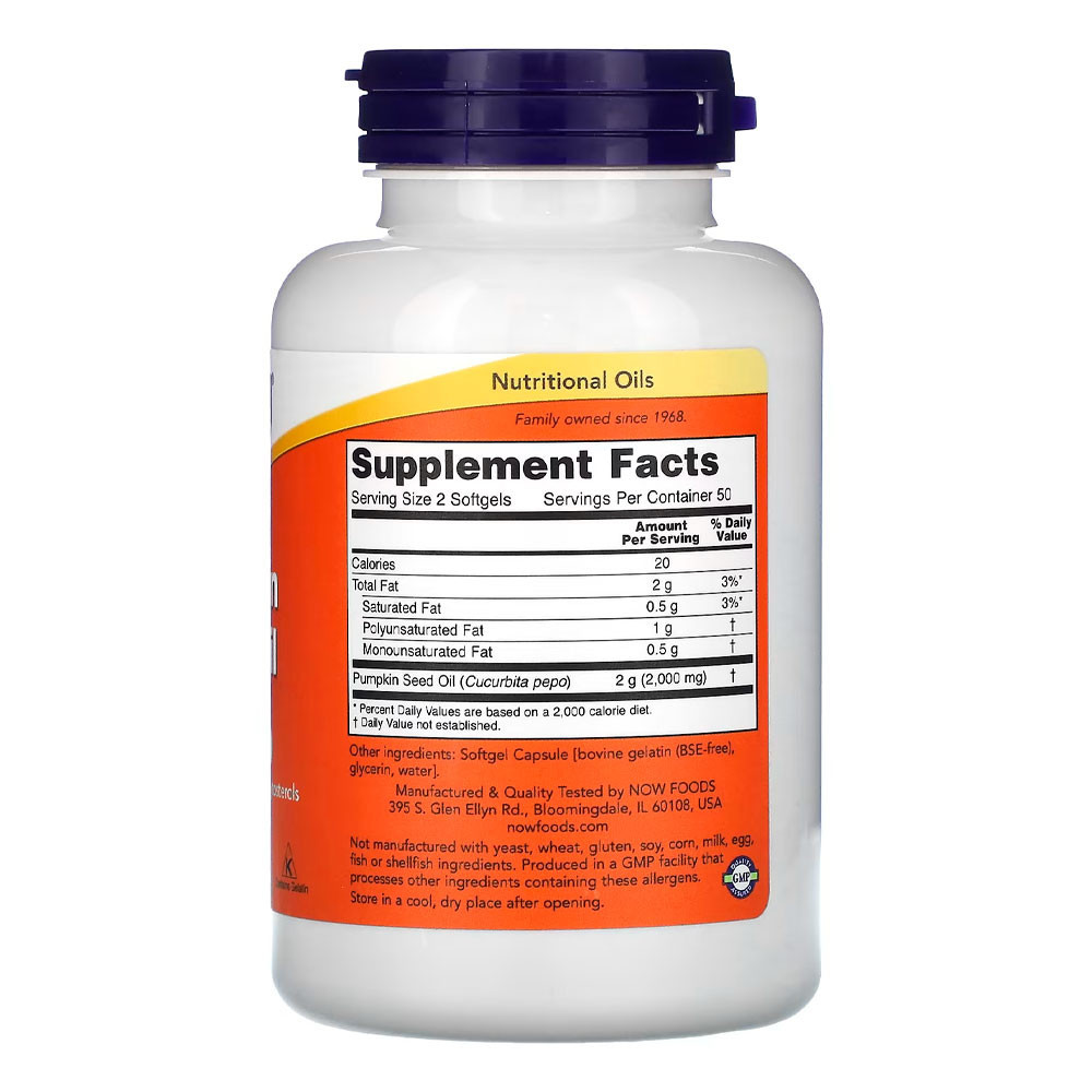 Óleo Semente Abóbora 1000mg Now Foods 100Soft Importado