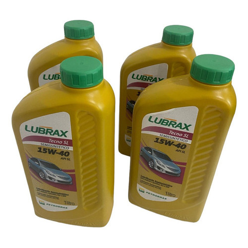 CONTEÚDO DA EMBALAGEM: KIT COM 4 FRASCOS DE 01 LITROS DE ÓLEO LUBRIFICANTE SEMISSINTÉTICO TECNO 15W-40 API SL - LUBRAX Lubrificante semissintético para uso nos motores à gasolina, etanol, flex e GNV de veículos nacionais ou importados com ou sem injeção eletrônica e que exigem lubrificante com nível de desempenho API SL ou inferiores. Proporciona proteção superior e previne desgaste do motor. Aplicável nos seguintes veículos: Volkswagen: Gol, Golf, Fox, Polo, Saveiro. Chevrolet/GM: Celta, Corsa, Classic, Meriva, Prisma. Ford: Fiesta, Ka, EcoSport. Fiat: Palio, Uno, Fiorino. IMPORTANTE: Em caso de dúvidas, entre em contato pelo Chat. Não nos responsabilizamos pela aquisição e aplicação de itens incompatíveis. A troca de óleo deve ser realizada por profissionais especializados.