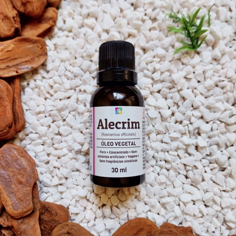 -------- Características -------- Nome científico: Rosmarinus officinalis L. –Lamiaceae (Rosemary Oil) Parte utilizada: Folha Odor: Característico Cor: Verde a verde escuro Benefícios para os Cabelos: Combate a queda, Trata a caspa, Estimula o crescimento de fios novos, Dá brilho e elasticidade, Combate a oleosidade, Previne a calvície, Escurece os fios brancos, Realça a cor dos cabelos escuros. Benefícios para a Pele: Antisséptico e Antimicrobiano, Combate a celulite, Adstringente, Previne rugas, Combate a dermatite, Mantém o nível de colágeno, Ajuda na estrutura celular, Reduz a flacidez.