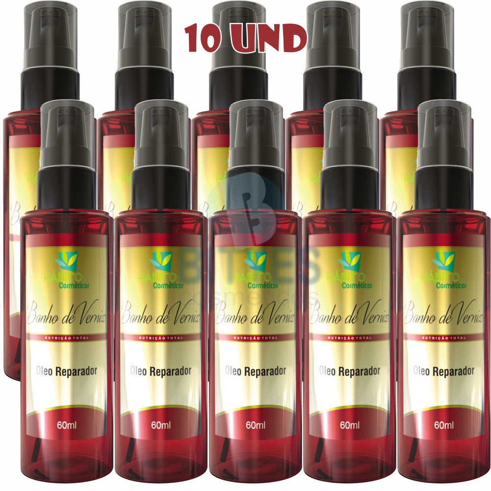Óleo Verniz Reparador de Pontas Hábito Cosméticos Óleo Reparador de Pontas Hábito Cosméticos banho de verniz foi desenvolvido para proporcionar uma reconstrução nas camadas do fio eliminando a porosidade deixando fáceis para pentear pois age sobre fios ressecados e opacos, contém em sua formula ativos capazes de auxiliar o tratamento dos cabelos emborrachados, reparar as pontas duplas e controlar os fios rebeldes, sendo uma ótima opção para finalização de escova ou uso hidratante no dia-a-dia. Empacotamento: O produto e lacrado direto da indústria, e reforçado com fita adesiva, para suportar o transporte sem vazamento, empacotada e reforçada com caixa de papelão, para que seu pacote chegue intacto pronto para uso ou revenda! Temos todos os produtos da Hábito cosméticos em atacado e varejo solicite o link. Produto a pronta entrega, envio de imediato! Seu pedido contém: 1 Óleo Reparador de Pontas 60ml