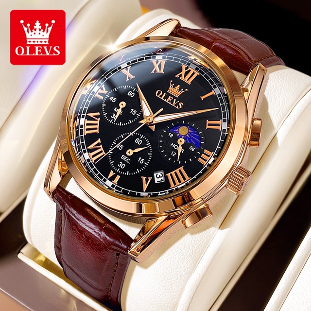 OLEVS Relógio Masculino 2871 Relogio A Prova D'água Luxo Orient Leather Multifuncional Calendário