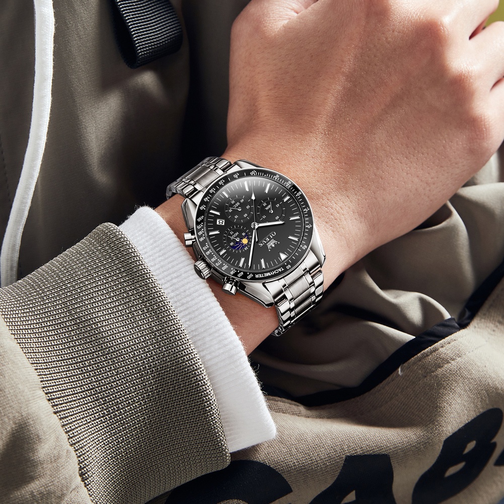 OLEVS relógio masculino relogio à prova d'agua multifuncional luxo de ouro preto & azul 3618