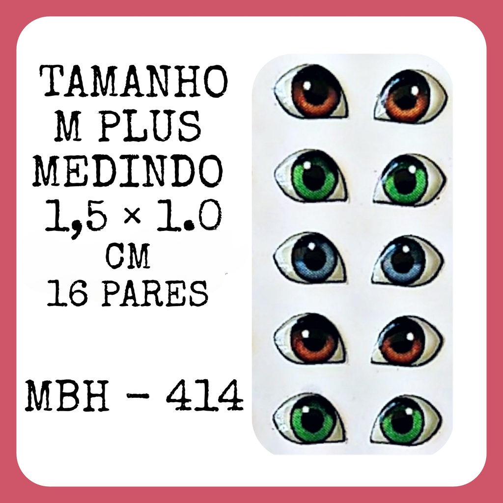 ✅Antes de comprar, por favor, leia toda a descrição com atenção. Cada olho é feito com uma modelagem própria, e os tamanhos variam conforme o formato – isso garante que você escolha a opção perfeita para o seu trabalho! --- ✅Tamanhos disponíveis (comprimento maior): PP (0,5 ou 0,6 cm) – 60 pares P (0,7 cm) – 50 pares P Plus (1,0 cm) – 40 pares M (1,3 cm) – 24 pares M Plus (1,5 cm) – 16 pares G (2,0 cm) – 12 pares GG (2,5 cm) – 6 pares Extra G (3,0 cm) – 4 pares -✅ Observações importantes: ➡Verifique as medidas antes de comprar, para garantir que o tamanho se encaixe no seu projeto. ➡Por ser um produto artesanal e impresso, pode ocorrer pequena variação de tom, mas a qualidade permanece impecável. Produto 100% artesanal, feito com muito carinho para valorizar o seu trabalho. Agradeço de coração por confiar no meu trabalho. Que Deus abençoe sua vida e sua criatividade!