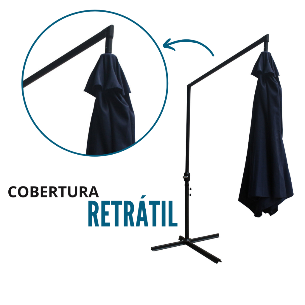 Ombrelone Guarda Sol Suspenso 3,0m Com Base Lateral Azul