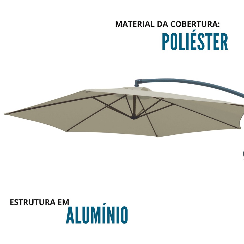 Ombrelone Suspenso 3,0 Metros Alumínio Branco Proteção Solar Ideal Para Jardim e Piscina