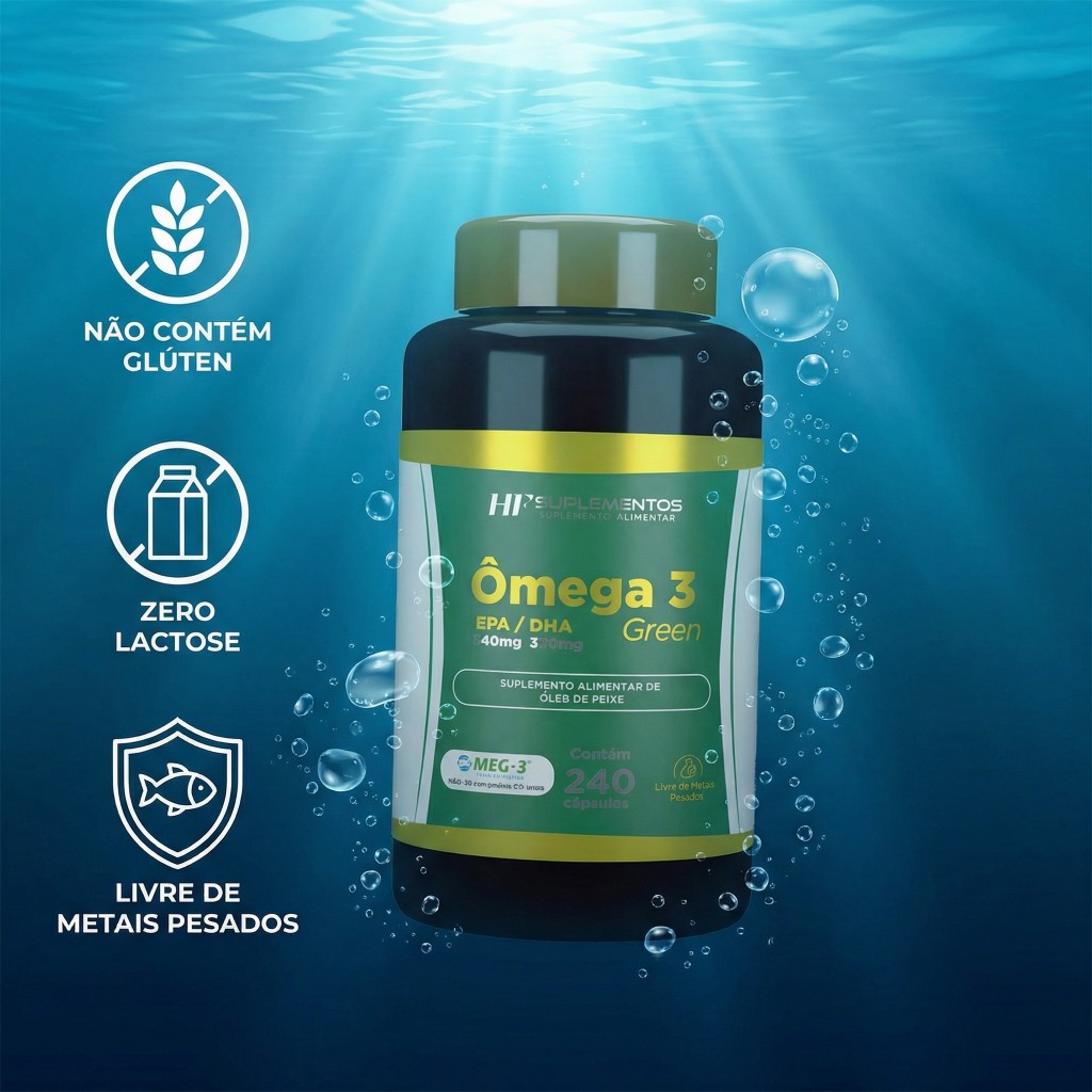 Omega 3 1000mg HF Suplementos 240 Caps Óleo de Peixe Puro EPA DHA Concentrado Coração e Saúde Vida