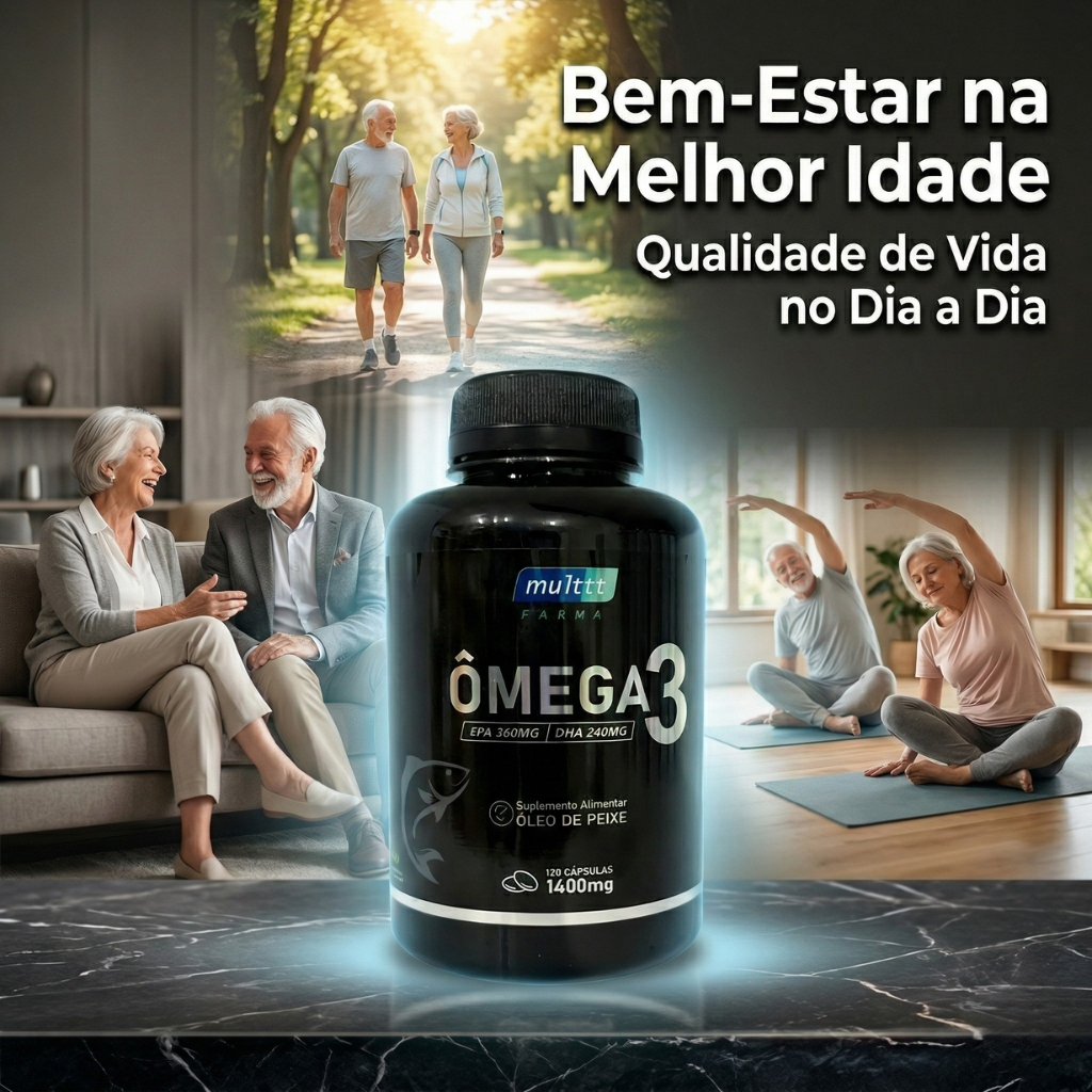 O Ômega 3 1400mg é um suplemento alimentar à base de óleo de peixe, desenvolvido para complementar a ingestão diária de ácidos graxos essenciais de forma prática. As cápsulas são fáceis de ingerir e ideais para incluir na rotina alimentar do dia a dia. Sua formulação fornece EPA 360mg e DHA 240mg por porção, nutrientes naturalmente presentes em peixes e amplamente utilizados como complemento da alimentação. ✨ Diferenciais do produto ✔️ Suplemento alimentar de óleo de peixe ✔️ 1400mg por cápsula ✔️ EPA 360mg + DHA 240mg por dose ✔️ Frasco com 120 cápsulas, excelente rendimento ✔️ Cápsulas práticas para consumo diário ✔️ Produto original e lacrado 📝 Sobre EPA e DHA EPA e DHA são ácidos graxos da família ômega 3 encontrados naturalmente em peixes. São componentes importantes da alimentação e comumente incluídos em rotinas nutricionais equilibradas. 📌 Modo de consumo Consumir conforme as orientações indicadas na embalagem do produto ou conforme recomendação de um profissional de saúde. 🏅 Qualidade e segurança Produto original, desenvolvido com rigoroso controle de qualidade, seguindo padrões de segurança e boas práticas de fabricação, garantindo mais confiança e tranquilidade ao consumidor. ❗ Informações importantes • Produto classificado como suplemento alimentar • Não é medicamento • Uso indicado para adultos