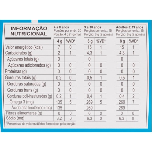 Nossas Gummies, tem como principal Ingrediente, a PECTINA, substância extraída naturalmente das frutas, sendo portanto de origem VEGETAL, ou seja, VEGAN e não ANIMAL como as demais, elaboradas com Gelatina. A PECTINA é um aditivo alimentício extremamente seguro, seu uso é reconhecido pelo Codex Alimentarius Internacional e permitido pela Legislação Brasileira. Trata-se de um composto muito importante para a digestão, uma vez que facilita a síntese de proteínas e lipídios e regula a absorção de carboidratos pelo organismo. Os produtos 3VS Gummies são: • Base de Tapioca; • Base de Pectina; • Kosher; • Halal; • Sem Glúten; • Sem Ovos; • Sem Gelatina; • Sem Lactose; • Sem Nozes; • Sem Soja; • Sem Xarope de Milho. INGREDIENTES: Àgua, óleo de linhaça, suco de limão, agentes de massa maltitol e isomalte, gelificante pectinas, acidulante ácido cítrico, regulador de acidez di-hidrogenocitrato de sódio, aroma natural de laranja, corante betacarotenos vegetais e edulcorante stevia. “NÃO CONTÉM GLÚTEN”. SUGESTÃO DE USO: Crianças de 4 a 8 anos, ingenr 1 pastlha gomosa ao dia. Crianças acima de 9 anos e adutos acima de 19 anos, ingerir 2 pastilhas gomosas ao dia ou conforme orientação de um profissional. Produto indicado para o grupo populacional com idade a partir de 4 anos. Não exceda a recomendação diária de consumo indicada na embalagem e mantenha fora do alcance de crianças. ESSE PRODUTO NÃO É UM MEDICAMENTO. Armazenamento: Conservar ao abrigo da luz, calor e umidade. Após aberto, consumir em até 60 dias. Lote e validade estão impressos na embalagem. INFORMAÇÃO NUTRICIONAL: Foto da informação nutricional no anúncio.