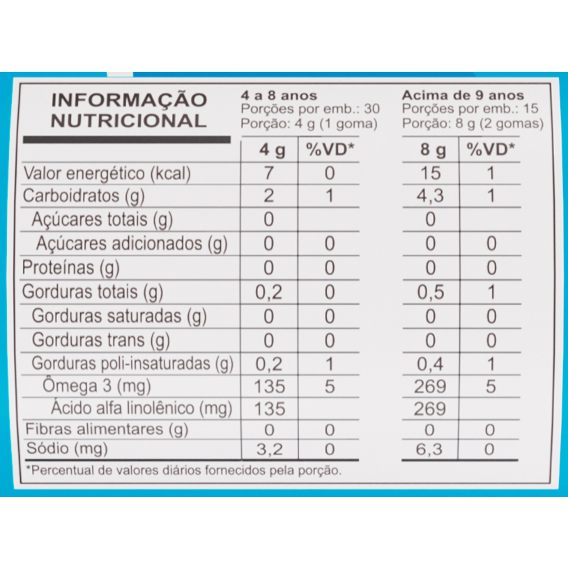 Nossas Gummies, tem como principal Ingrediente, a PECTINA, substância extraída naturalmente das frutas, sendo portanto de origem VEGETAL, ou seja, VEGAN e não ANIMAL como as demais, elaboradas com Gelatina. A PECTINA é um aditivo alimentício extremamente seguro, seu uso é reconhecido pelo Codex Alimentarius Internacional e permitido pela Legislação Brasileira. Trata-se de um composto muito importante para a digestão, uma vez que facilita a síntese de proteínas e lipídios e regula a absorção de carboidratos pelo organismo. Os produtos 3VS Gummies são: • Base de Tapioca; • Base de Pectina; • Kosher; • Halal; • Sem Glúten; • Sem Ovos; • Sem Gelatina; • Sem Lactose; • Sem Nozes; • Sem Soja; • Sem Xarope de Milho. INGREDIENTES: Àgua, óleo de linhaça, suco de limão, agentes de massa maltitol e isomalte, gelificante pectinas, acidulante ácido cítrico, regulador de acidez di-hidrogenocitrato de sódio, aroma natural de laranja, corante betacarotenos vegetais e edulcorante stevia. “NÃO CONTÉM GLÚTEN”. SUGESTÃO DE USO: Crianças de 4 a 8 anos, ingenr 1 pastlha gomosa ao dia. Crianças acima de 9 anos e adutos acima de 19 anos, ingerir 2 pastilhas gomosas ao dia ou conforme orientação de um profissional. Produto indicado para o grupo populacional com idade a partir de 4 anos. Não exceda a recomendação diária de consumo indicada na embalagem e mantenha fora do alcance de crianças. ESSE PRODUTO NÃO É UM MEDICAMENTO. Armazenamento: Conservar ao abrigo da luz, calor e umidade. Após aberto, consumir em até 60 dias. Lote e validade estão impressos na embalagem. INFORMAÇÃO NUTRICIONAL: Foto da informação nutricional no anúncio.