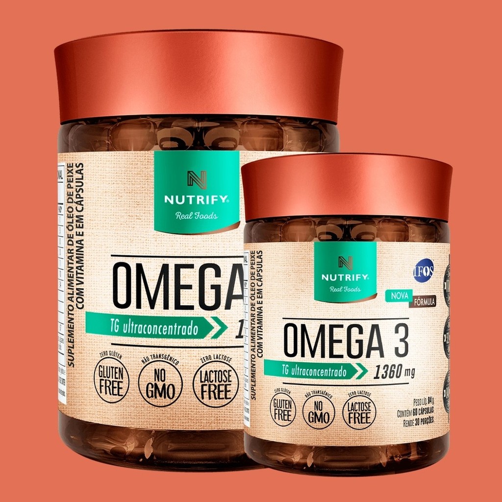 Ômega 3 Pote com 60 Cápsulas Nutrify Sobre o produto: O Ômega 3 Nutrify é um suplemento com alta concentração de EPA e DHA em sua forma natural de triglicerídeos (TG), proporcionando absorção eficiente e benefícios ampliados para o coração, cérebro, visão e saúde inflamatória. Formulado com óleo de peixe purificado e certificado pelo selo IFOS, garante pureza, qualidade e segurança. Com cápsulas fáceis de engolir e zero sabor residual, é uma escolha prática para o dia a dia. Diferenciais do produto - Alta concentração: 1.360 mg de ômega-3 por dose (2 cápsulas), sendo 840 mg de EPA e 521 mg de DHA - Forma TG natural: maior biodisponibilidade e aproveitamento pelo organismo - Certificação IFOS: pureza testada contra metais pesados, dioxinas e PCBs - Com vitamina E: ação antioxidante e proteção do óleo - Cápsulas livres de odor e retrogosto de peixe Para que serve o ômega 3: O ômega 3 é um ácido graxo essencial que precisa ser obtido pela alimentação ou suplementação. Está presente nas membranas celulares e atua em diversas funções, como Suporte à saúde cardiovascular,Auxílio na função cerebral e saúde cognitiva,Contribuição para a saúde visual,Ação anti-inflamatória natural,Suporte ao sistema imunológico. Como usar - Consumir 2 cápsulas ao dia, preferencialmente junto das principais refeições (almoço ou jantar), para otimizar a absorção dos ácidos graxos. - A dose pode ser ajustada conforme orientação de médico ou nutricionista. Ingredientes: Óleo de peixe, acetato de DL-alfatocoferol (vitamina E), cápsula (gelatina, glicerol e água purificada). Alérgicos: CONTÉM DERIVADOS DE PEIXE E SOJA. PODE CONTER PINOLI. NÃO CONTÉM GLÚTEN. Pessoas alérgicas a peixes e crustáceos devem evitar o consumo deste produto. Advertências - Este produto não é um medicamento. - Não exceder a recomendação diária de consumo indicada na embalagem. - Gestantes, lactantes, crianças e pessoas com enfermidades devem consultar um profissional de saúde antes de usar. - Manter fora do alcance de crianças. Conservar em local seco, fresco e ao abrigo da luz. Conclusão: O Ômega 3 Nutrify é ideal para quem busca suporte nutricional completo, com qualidade certificada e absorção otimizada. Perfeito para manter a saúde do coração, do cérebro e da visão em dia com praticidade e segurança.
