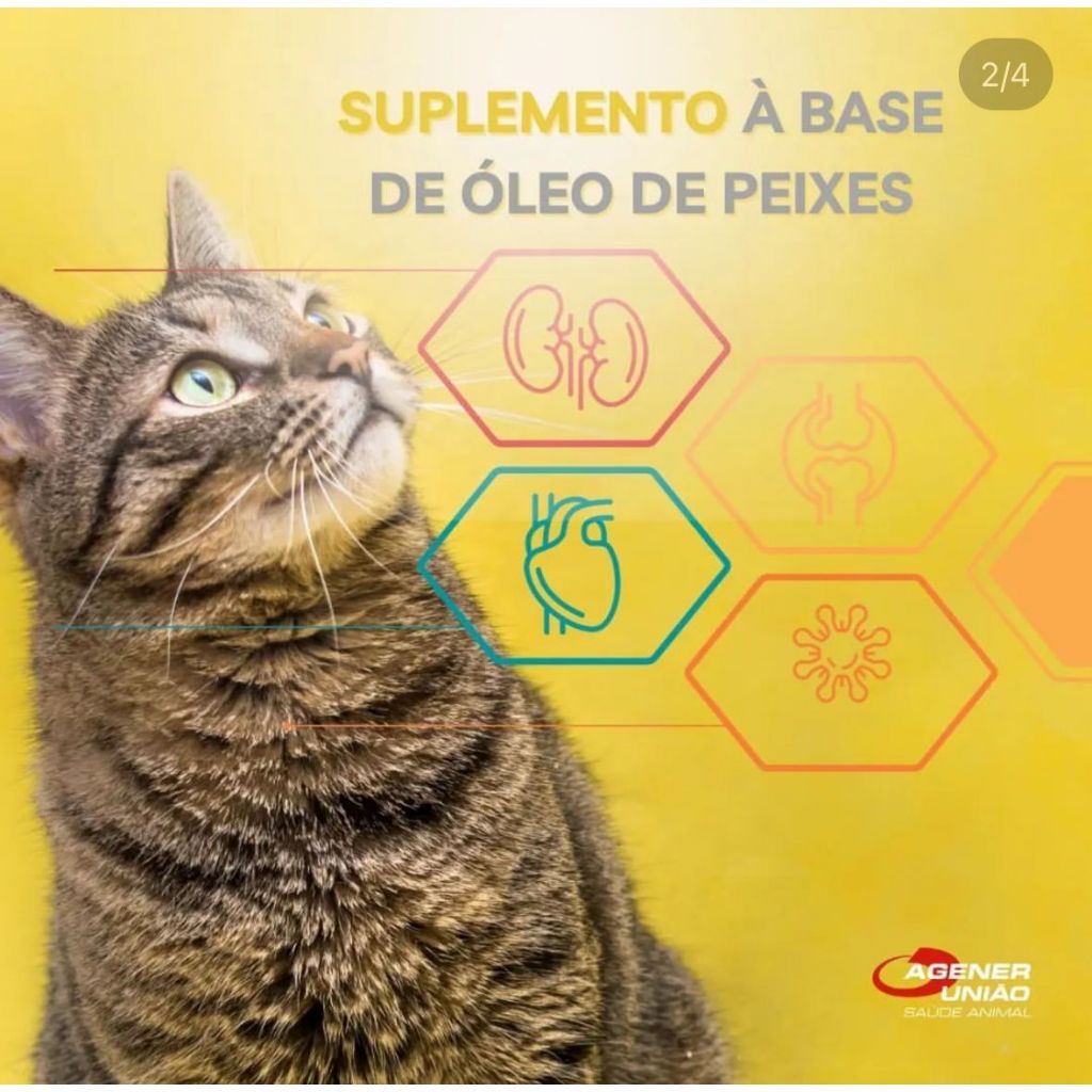 Proporcionar uma alimentação completa e balanceada é um dos principais cuidados para garantir o equilíbrio no organismo dos animais. Com isso em mente, o Ômega Top 3 da Agener União é um suplemento alimentar completo e saboroso para a dieta dos peludos. O suplemento alimentar para gatos e cães possui a proporção ideal de EPA e DHA, além de acompanhar 40 cápsulas para consumo. Confira os principais benefícios do produto abaixo: - Possui ácidos graxos essenciais; - Contém odor de peixe reduzido; - É saboroso. Com a suplementação ideal, é possível proporcionar diversos nutrientes que os animais necessitam no dia a dia. Quer conhecer mais sobre essa solução? Então, continue a leitura e veja as principais dúvidas que surgem entre os tutores. Modo de usar: Administrar a cápsula inteira ou o conteúdo da cápsula de acordo com a seguinte dose: 1 cápsula ao dia para cães e gatos até 9kg de peso. Composição básica do produto: Omega 3 proveniente de óleo de peixes marinhos e vitamina E.