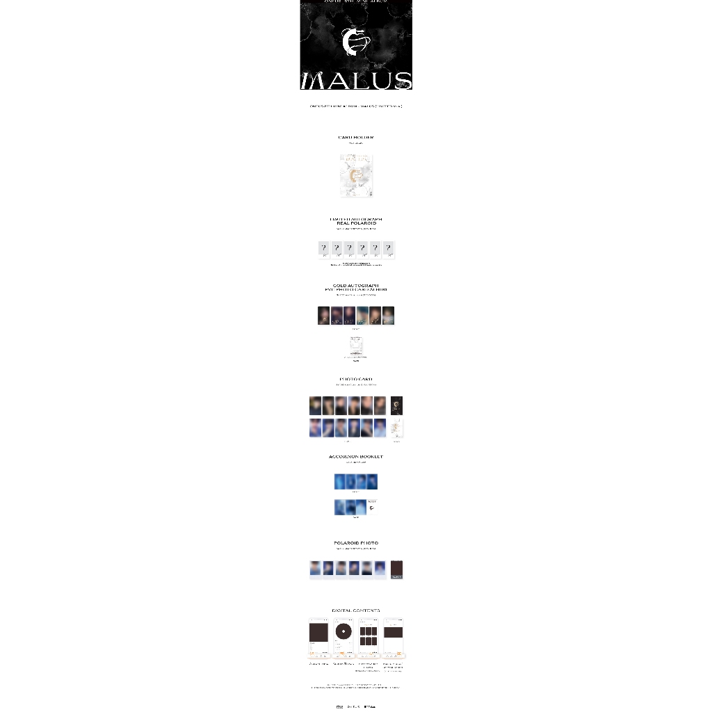 ATUALIZADO: 2025-07-04 💛Mini Álbum MALUS LIMITADO ver. Conteúdo do conteúdo PORTA CARTÃO: 90*120mm - ÁLBUM DE CARTÃO FOTO PVC AUTOGRAFO OURO: 54*85mm / ALEATÓRIO 1 DE 6 CARTÃO DE FOTOS: 54*85mm / ALEATÓRIO 2 DE 12 LIVRO DE ACORDO: 320*110mm / 8p FOTO POLARÓIDA: 54*85mm /ALEATÓRIO 1 FORA DE 6 CONTEÚDO DIGITAL - CONTEÚDO DIGITAL #SIXKSHOP #ONEUS
