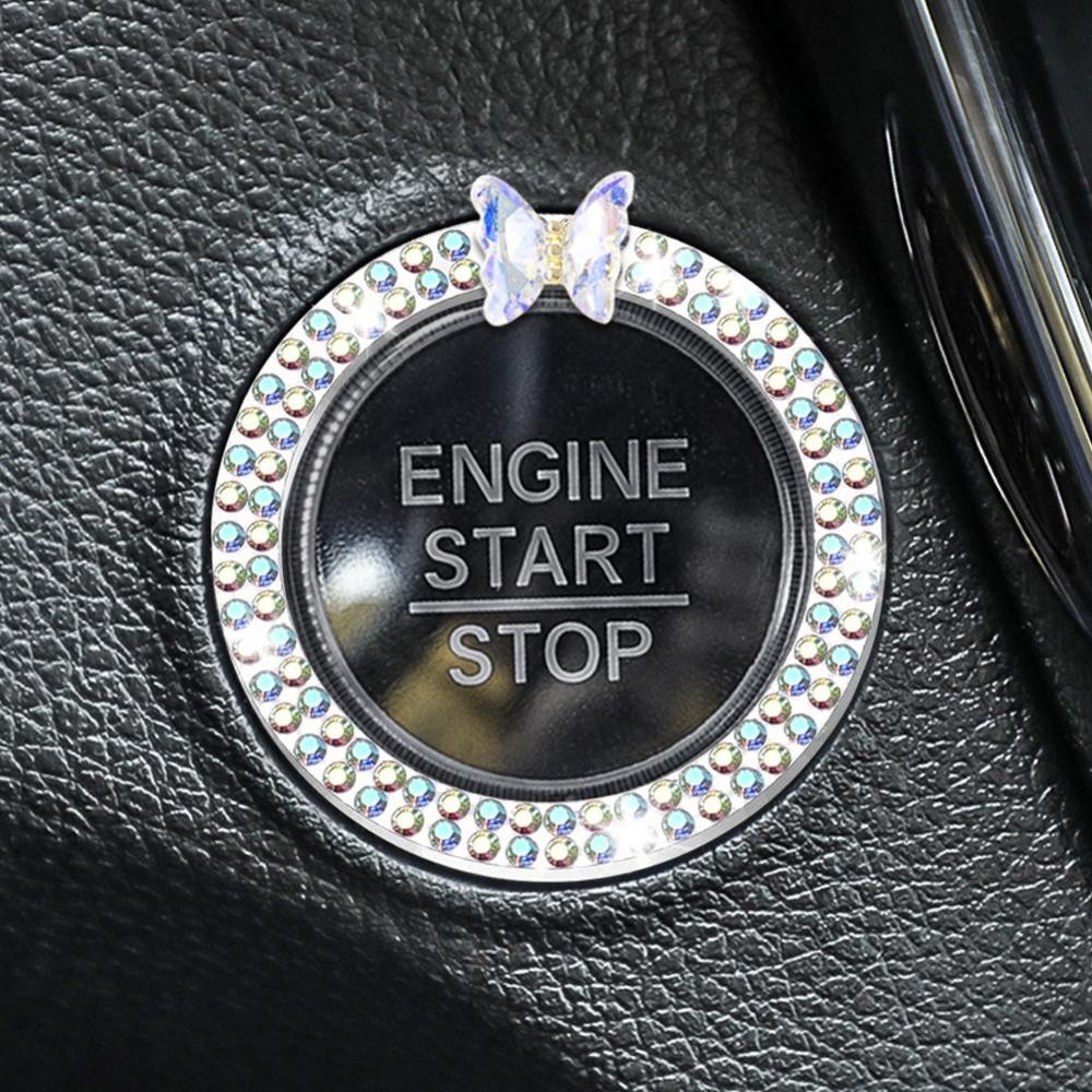 OPENMALL Cristal Carro Onekey Botão De Partida Decoração Anel Com Diamante Strass Círculo Start Stop Interruptor Acessór