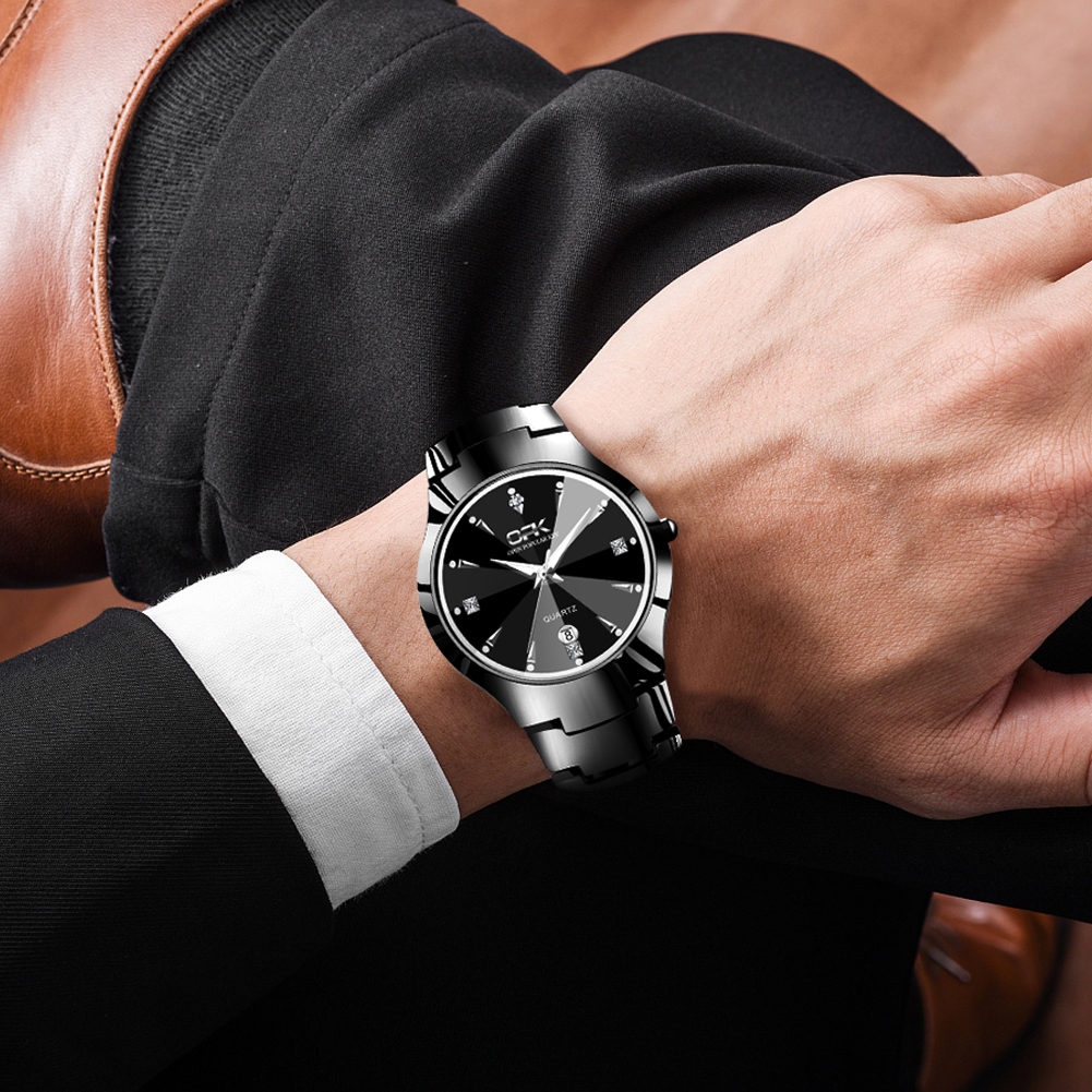 OPK Relógio Masculino A Prova D Água Original Luxo Preto De Aço Quartzo Calendário 8105
