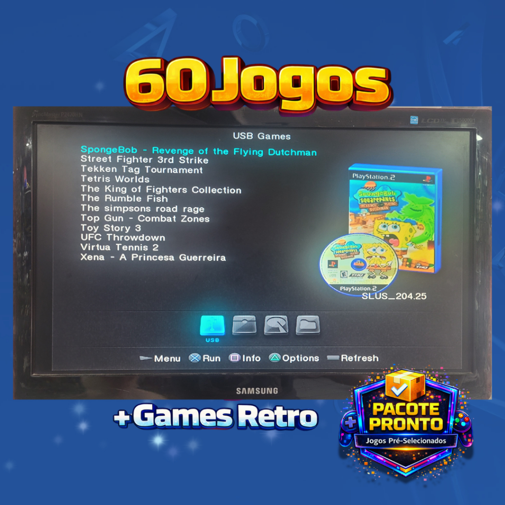 🎮 **Sistema OPL para PlayStation 2** Kit completo com **Memory Card + Pendrive 64GB**, compatível com **PlayStation 2 FAT ou SLIM**, já configurado com Brinde: **lista fixa de 60 jogos clássicos**. ✅ **Principais Vantagens** * 🔌 **Fácil instalação** * ⚡ **Plug and Play**: plugou, jogou! * 🧠 Sistema OPL já configurado * 💬 **Suporte pós-venda pelo chat** ⚠️ **Atenção:** Produto compatível exclusivamente com **PlayStation 2**. VARIAÇÃO 1 * Pendrive com **64GB de capacidade** 📋 **Lista Fixa de Jogos (60 Títulos)** 1. 00 – Ultimate Retro 2. 18 Wheeler 3. Air Raid 3 4. Billiards Xciting 5. Black 6. Blowout 7. Bloody Roar 3 8. Bomba Patch 2026 9. Bully 10. Call of Duty 04 11. Capcom Fighting Evolution 12. Capcom vs SNK 2 – Mark of the Millennium 2001 13. Captain Commando 14. Crash Bandicoot – Cortex Strikes Back 15. Crash Nitro Kart 16. Crazy Taxi 17. D.O.N Battle Stadium 18. Dave Mirra Freestyle BMX 2 19. Def Jam – Fight for NY 20. Disney’s PK – Out of the Shadows 21. Final Fight 22. FreeStyle 23. God of War 24. God of War II 25. Gradius V 26. GTA San Andreas 27. Harry Potter – Chamber of Secrets 28. Hot Wheels – Beat That 29. ICO 30. Inspetor Bugiganga 31. LEGO Star Wars 32. Madagascar 33. Marvel vs Capcom 2 34. Maximo – Ghosts to Glory 35. Mega Man X8 36. Metal Slug Anthology 37. Midnight Club 3 38. Mortal Kombat – Shaolin Monks 39. Need for Speed – Most Wanted 40. Pac-Man World Rally 41. Power Rangers – Super Legends 42. Project Arms 43. Ratatouille 44. Ready 2 Rumble Boxing – Round 2 45. Resident Evil 4 (Dublado) 46. Sengoku Basara X Cross 47. SNK vs Capcom 48. Spider-Man – Web of Shadows 49. SpongeBob – Revenge of the Flying Dutchman 50. Street Fighter III – 3rd Strike 51. Tekken Tag Tournament 52. Tetris Worlds 53. The King of Fighters Collection 54. The Rumble Fish 55. The Simpsons – Road Rage 56. Top Gun – Combat Zones 57. Toy Story 3 58. UFC Throwdown 59. Virtua Tennis 2 60. Xena – A Princesa Guerreira