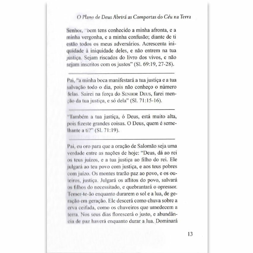 📝 Descrição Este livro convida você a alinhar seu coração com Deus e abrir as comportas do céu sobre sua vida. John Eckhardt combina orações poderosas com decretos bíblicos, mostrando como a Palavra pode transformar ambientes espirituais, trazer justiça, paz, alegria e renovação. Cada oração apresenta respaldo nas Escrituras, fortalecendo a fé, despertando esperança e encorajando uma conexão mais profunda com Deus, mesmo em momentos de dificuldade. “Orações que Abrem as Comportas do Céu” é ideal para quem busca uma vida de oração mais efetiva, para líderes de ministério, pessoas devotas ou qualquer cristão que sinta necessidade de avivamento espiritual. O livro oferece clareza prática, linguagem acessível, reflexões profundas sobre fé, misericórdia, graça, além de orientações para usar orações e confissões como armas espirituais. 📚 Ficha Técnica Autor: John Eckhardt Editora: BV Books ISBN: 9788561411725 Formato: Brochura Número de páginas: 116 Acabamento: Capa mole Ano de publicação: 2020 Idioma: Português 🔍 Palavras-Chave oração poderosa, escrita cristã, avivamento, espiritualidade, bênçãos celestiais