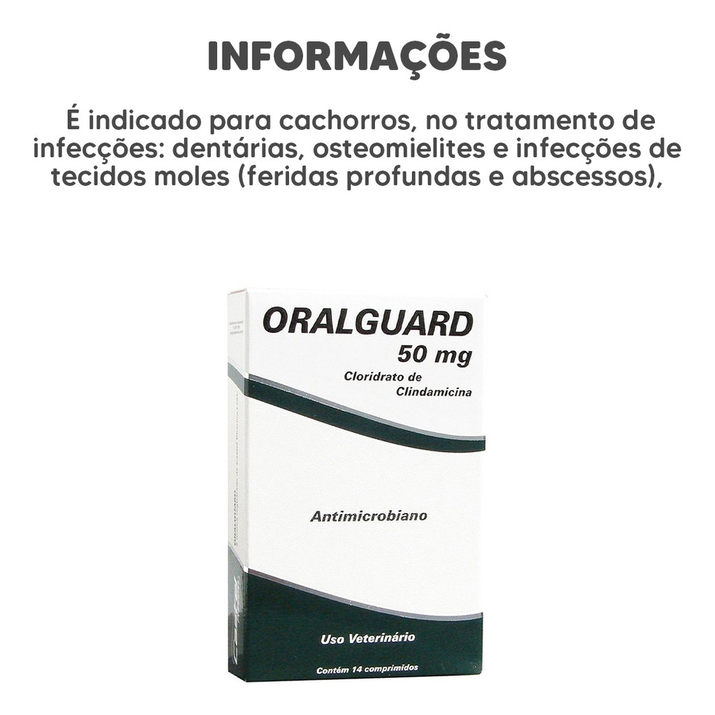 Somos revendedores Autorizados do Laboratório. Produto Original, Lacrado, Com nota fiscal e validade longa. O Oralguard é um antimicrobiano oral indicado para cães e gatos. Cada embalagem contém 14 comprimidos de 50 mg, fornecendo um tratamento eficaz contra infecções bacterianas em animais de estimação. As infecções bacterianas podem ocorrer em diferentes partes do corpo dos cães e gatos, como pele, ouvidos, trato urinário, respiratório e gastrointestinal. O Oralguard contém como ingrediente ativo o enrofloxacino, um antibiótico de amplo espectro que combate efetivamente várias bactérias causadoras de infecções. A administração do Oralguard deve ser feita conforme as orientações do veterinário, respeitando a dosagem recomendada para o peso e a condição do animal. Geralmente, os comprimidos são administrados por via oral, facilitando a ingestão pelo pet. É importante seguir o período de tratamento indicado para garantir uma eficácia máxima. É fundamental destacar que o Oralguard deve ser utilizado sob prescrição e orientação veterinária. Antes de iniciar o tratamento, é necessário que um veterinário avalie a condição do seu animal e faça um diagnóstico preciso da infecção bacteriana para determinar a dose adequada e a duração do tratamento. O Oralguard é uma opção confiável para o tratamento de infecções bacterianas em cães e gatos. Com sua ação antimicrobiana, ele auxilia na eliminação das bactérias causadoras de infecções e contribui para a recuperação do animal. Consulte sempre um veterinário para obter orientações específicas sobre o uso correto do Oralguard para o seu pet.