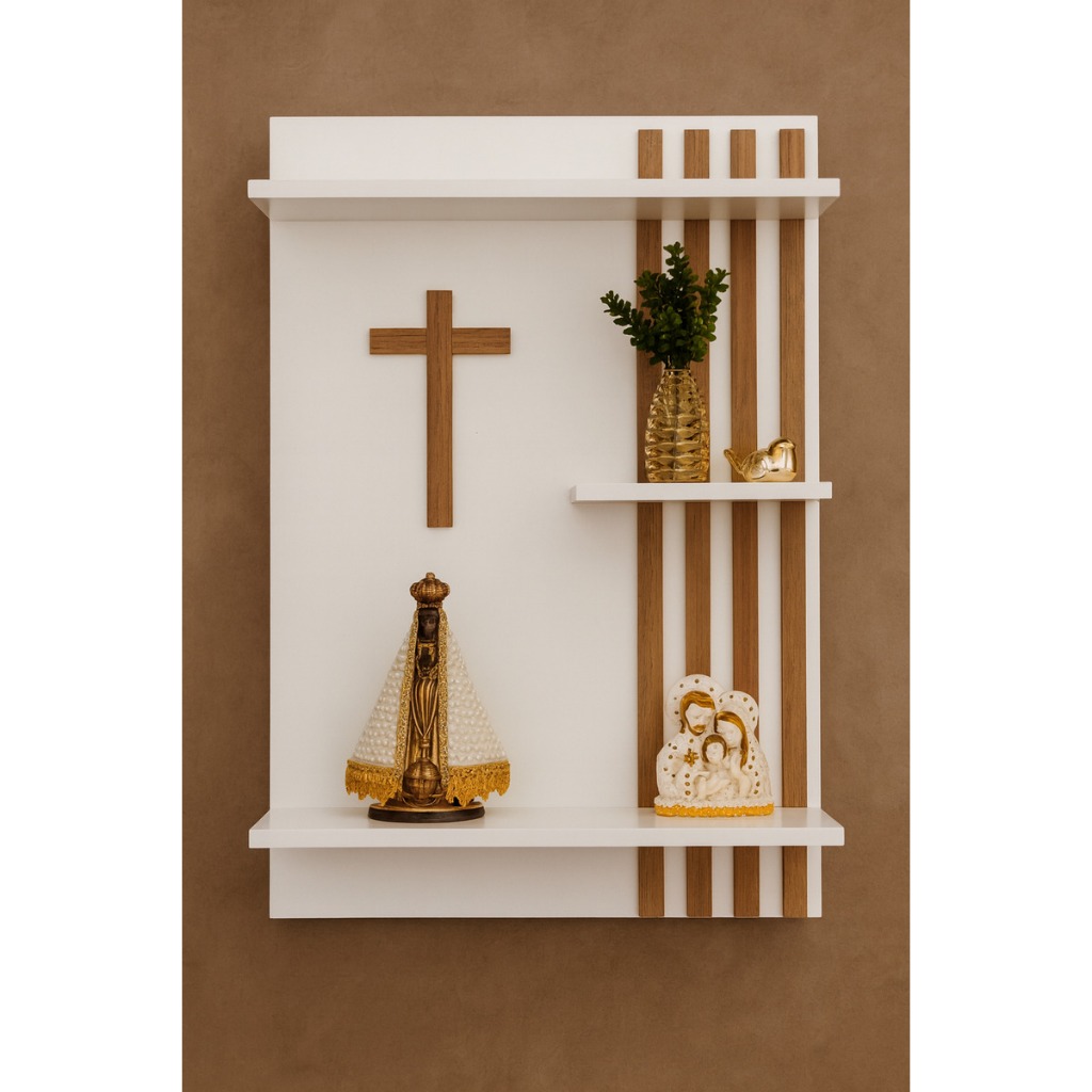 Oratório Ripado Mdf Com Luminária Painel Suporte Parede Cantinho Da Oração