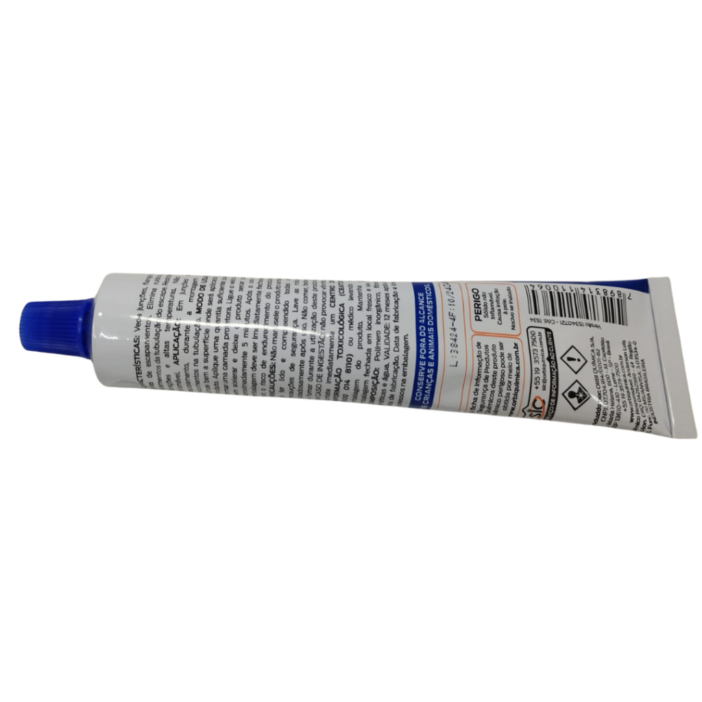 Veda furos, junções e juntas de escapamentos automotivos e estacionários durante sua montagem, vazamentos nas tubulações, também em fornos e estufas para pequenos reparos. Resiste à vibrações e altas temperaturas. Composição: Polímero inorgânico, Fibras Sintéticas e Água. Leia sempre as instruções antes de utilizar o produto. Modo de usar: 1- Limpe bem a superfície onde será aplicado o produto ela deve estar isenta de oxidação e gordura. 2- Aplique uma quantidade suficiente para formar uma camada protetora. 3- Ligue o veículo sem acelerar e deixe secar por 5 minutos (pelo próprio calor do escapamento) para alguns reparos onde é utilizado uma quantidade maior de produto, o tempo de secagem pode ser maior. 4- Após a aplicação fechar a embalagem imediatamente, sob risco de endurecimento do produto. Conteúdo: - 1 Cola Veda Escape 100g