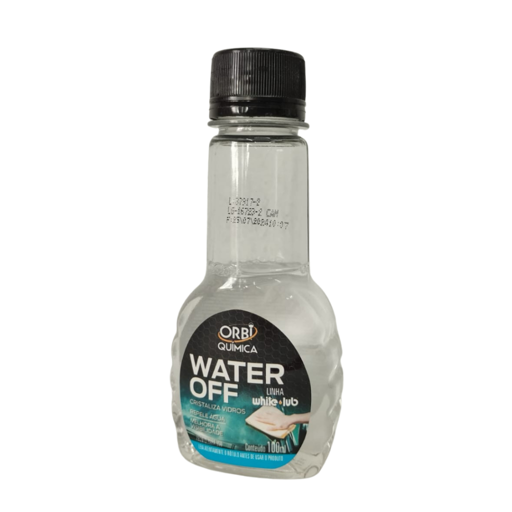 Water Off da marca Orbi é um produto repelente de água e ideal para superfícies como vidros de automóveis, motos, embarcações, entre outros. Prático e fácil de usar, permitindo que o usuário cubra uma grande área com facilidade. Ele é incolor e tem um odor característico, que não interfere na aparência do vidro. O Water Off é um produto que tem a função de repelir água e manter a visibilidade em superfícies de vidro. Sua composição contém compostos químicos que criam uma camada protetora na superfície do vidro, impedindo que a água fique aderida, escorra ou forme gotículas que prejudicam a visibilidade. É importante destacar que o produto deve ser aplicado em vidros limpos e secos para que sua eficácia seja garantida. Leia sempre as instruções antes de utilizar o produto. Conteúdo: - 1 Water Off 100ml