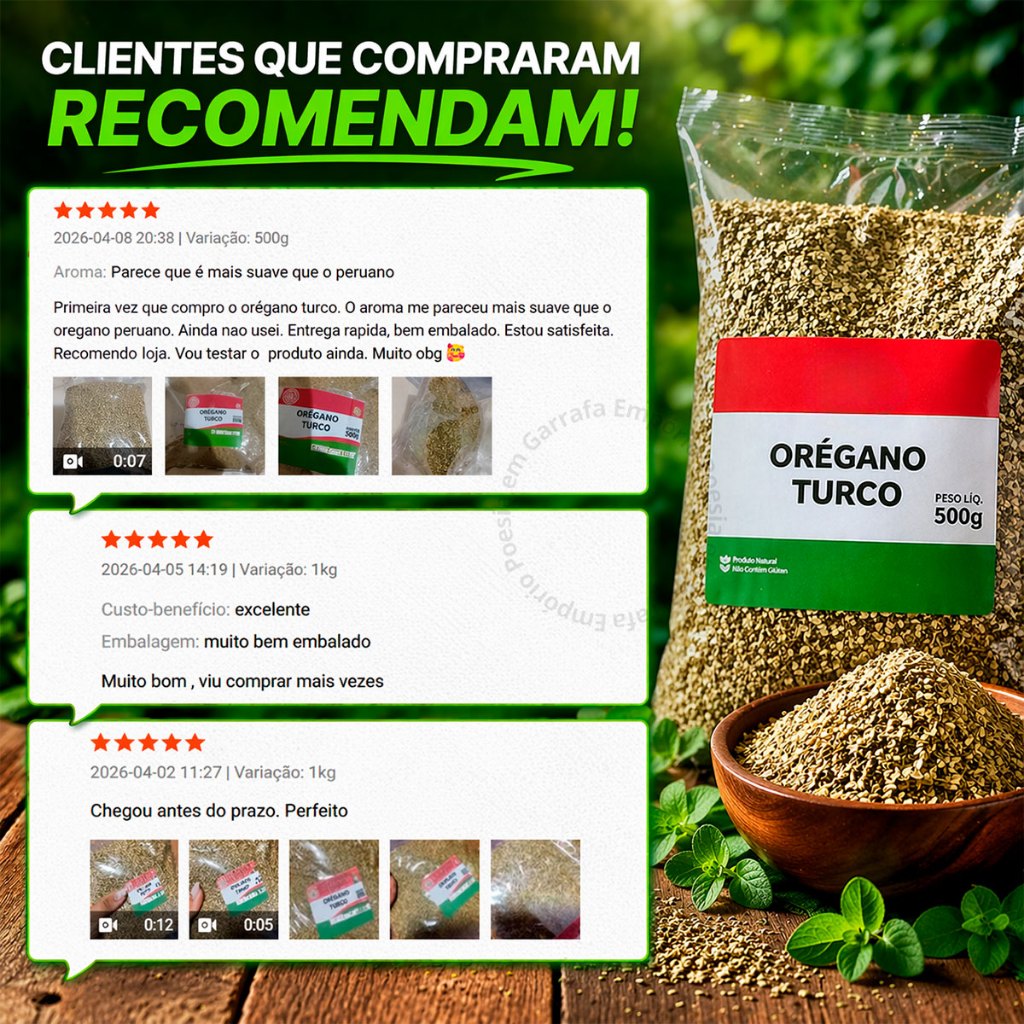 | Orégano Turco Premium 1kg 500g 250g Aromático Fresquinho Melhor Qua... este produto | R$ 10,49 | 54% | 4.8/5 | 194 |