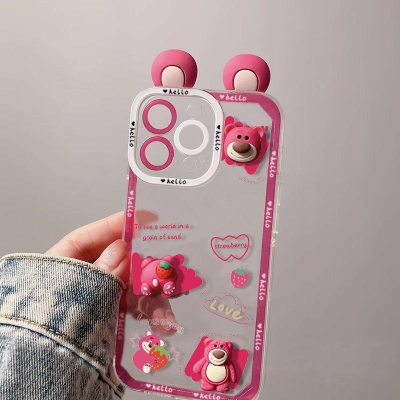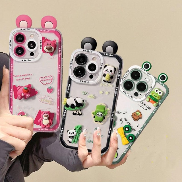 Orelhas 3D Fofas Olhos De Rã Panda Lotso Caixa De Bonecas De Urso Para Samsung Galaxy A06 A05 A05S A34 A35 A71 A55 A51 A30 A20 A24 A14 A15 A33 A73 A12 A32 Fofa De Telefone Transparente