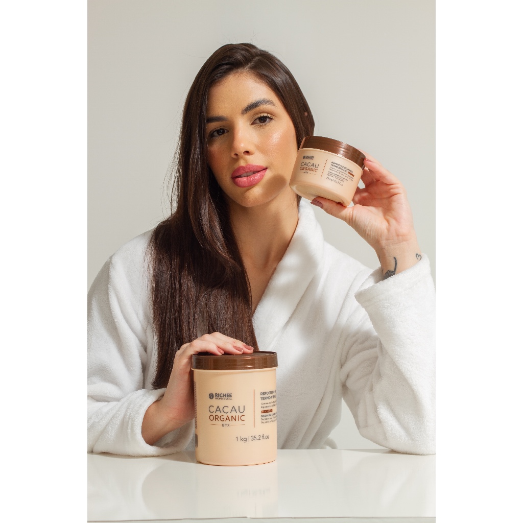 CACAU ORGANIC BTX / PROFISSIONAL Cacau Organic BTX Repositor de Massa devolve a massa perdida, restaura e reduz o volume. Formulada para atuar na reposição de lipídios, nutrindo e recuperando os cabelos secos e ressecados. Devolve os nutrientes que auxiliam no reforço estrutural dos fios, deixando-os macios, sem frizz, com toque suave e brilho intenso. BENEFÍCIOS Formulada com Manteiga de Murumuru e Cacau que proporcionam uma hidratação profunda e nutrição intensiva, ajudando a restaurar a elasticidade dos fios, reduzir o volume e o frizz e promover brilho e maciez aos cabelos. Manteiga de Cacau: rica em óleo esteárico e palmítico, vitaminas A, C e E, minerais e antioxidantes, é excelente para hidratar e proteger os fios mais ressecados, trazendo maciez, brilho e diminuindo o efeito frizz. Manteiga de Murumuru: contém alto teor de ácido láurico, um ácido graxo que penetra na haste do cabelo e permite uma melhor retenção de umidade e vedação da cutícula, resultando em cabelos mais macios e hidratados. INDICAÇÃO Todos os tipos de cabelos. RESULTADO Cabelos disciplinados, com controle do frizz, macios e com brilho intenso.