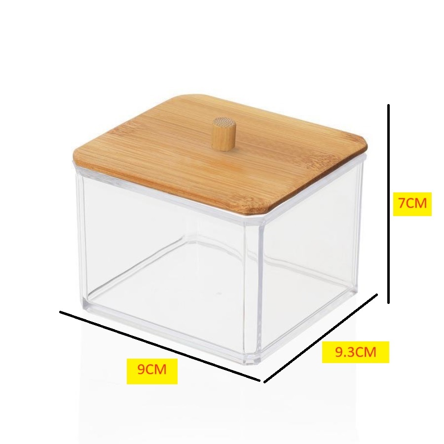 Organizado Pote Acrílico Cotonetes Tampa Bambu Para Guardar Algodão DIsco Removedor De Maquiagem E Outros Itens Pequenos