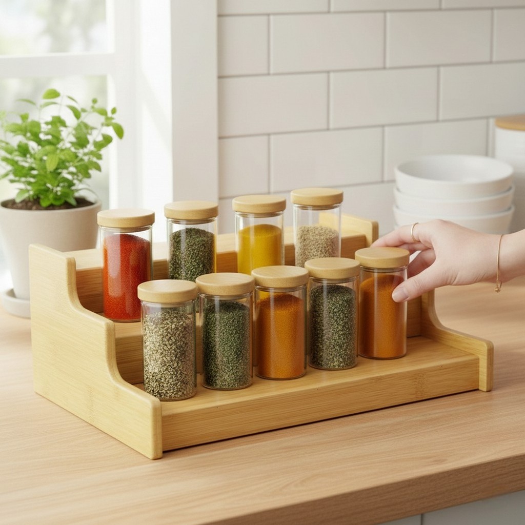 | Organizador 3 Andares Porta Temperos Cozinha Bambu Pódio Bege este produto | R$ 79,90 | 39% | 5.0/5 | — |