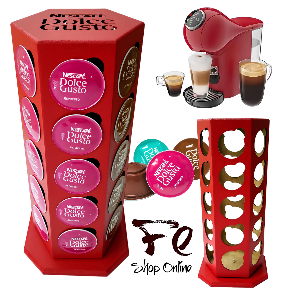 Organizador 30 Cápsulas DOLCE GUSTO Giratório VERMELHO Suporte Torre Porta Cápsulas CantinhoCafé MDF