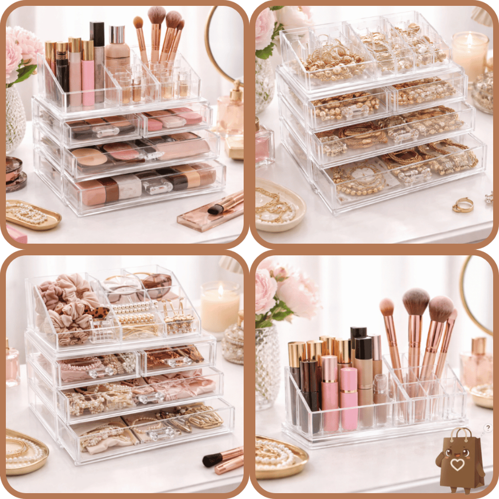 Organizador de Maquiagem em Acrílico – Beleza, Praticidade e Sofisticação em um Só Lugar! Mantenha sua maquiagem sempre organizada e ao alcance das mãos com nosso Organizador de Maquiagem em Acrílico (22x18x14 cm)! Com um design moderno e funcional, ele é perfeito para quem busca praticidade sem abrir mão da elegância. Destaques do Produto: Espaçoso e Funcional – Com 16 cavidades estrategicamente distribuídas e 4 gavetas deslizantes, acomoda desde batons e pincéis até acessórios menores. Acrílico Transparente e Resistente – Material de alta qualidade que garante durabilidade e permite visualizar facilmente seus produtos. Design Versátil – Ideal para qualquer ambiente: penteadeira, banheiro ou até mesmo no escritório. Praticidade no Dia a Dia – Organização eficiente para tornar sua rotina de beleza mais ágil e estilosa. Deixe sua maquiagem sempre à vista e organizada com muito mais elegância! Garanta já o seu! Estoque limitado!