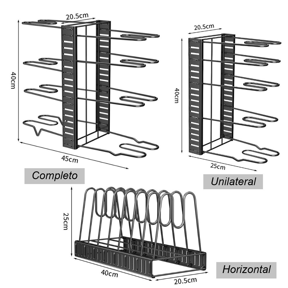 Organizador Ajustável De Tampas De Panela Com 8 Camadas Para Bancadas E Armários De Cozinha Yesop Organizador de panelas e panelas, organizador de panelas e panelas ajustável de 8 camadas, bancada de cozinha e suporte de armário, organizador de tampas para panelas e frigideiras com 3 métodos de bricolage Níveis ajustáveis: este organizador de prateleiras para bandejas vem com 8 níveis ajustáveis. Você pode ajustar facilmente a altura e a posição deste organizador de armários. Não importa o tamanho do seu gabinete, ele ainda pode caber no organizador do gabinete. 3 Soluções de organização DIY: O rack para panelas e frigideiras vem com 8 divisórias ajustáveis, horizontais em um lado; verticais em um lado; verticais em ambos os lados; escolha livremente o método necessário de acordo com suas necessidades; oferecendo flexibilidade suficiente para organizar suas panelas e frigideiras. Fácil de instalar: com o design de fivela removível, nosso rack de gabinete é fácil de instalar sem a necessidade de ferramentas adicionais, permitindo que você conclua facilmente a instalação em apenas alguns minutos. Economize espaço em sua cozinha: use nossas prateleiras de panelas para evitar que seus armários estraguem e economize muito espaço. Você não precisa mais se preocupar com o fato de sua cozinha estar uma bagunça e não conseguir encontrar seus utensílios de cozinha quando precisar deles; nosso organizador de panelas ajudará a manter suas panelas, frigideiras, tampas, bandejas, pratos, bandejas de biscoitos e tábuas de cortar bem organizados e de fácil acesso. Construção sólida: este organizador de prateleiras de panelas feito com ferro de alta resistência com tinta spray preta no processo final faz com que a tampa da panela não enferruje facilmente. O design profundo em forma de U permite que o organizador de panelas segure bem pequenas panelas ou potes enquanto é usado verticalmente; perfeito para organizar panelas grandes e pequenas.