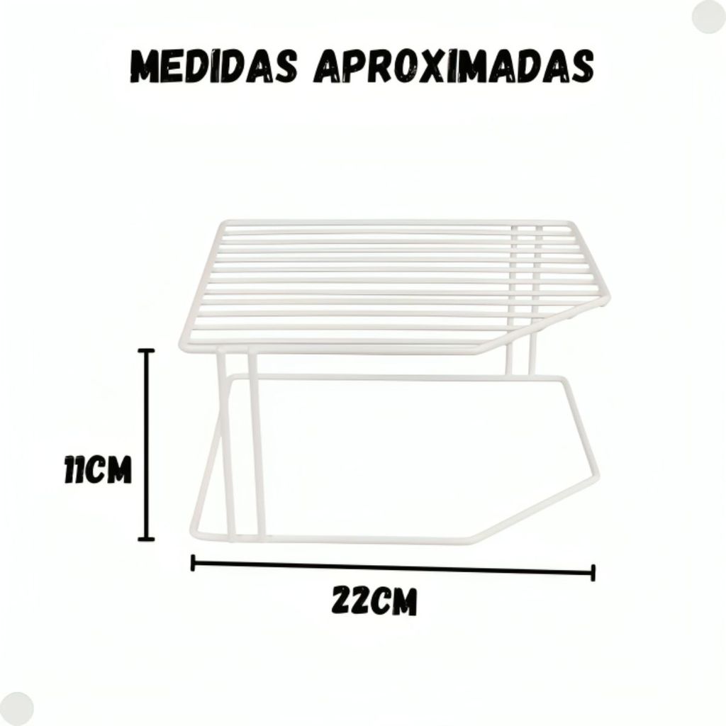 DESCRIÇÃO DO PRODUTO: A principal característica dela é a multifuncionalidade, são inúmeras opções para atender a qualquer demanda que esteja relacionada a organização! Investir no Suporte Multiuso é a escolha certeira para quem valoriza a versatilidade sem deixar de lado a estética minimalista. Resistentes, os modelos de 2 andares oferecem uma capacidade máxima de 5kg para você apoiar uma variedade de itens. Com ele, é possível otimizar os espaços dos armários da cozinha, organizar roupas e sapatos, dispor objetos no quarto, na mesa de centro da sala, acomodar produtos no banheiro, dispor materiais de escritório e maximizar o espaço de gavetas. A estrutura em aço com pintura em polietileno confere durabilidade e facilita na hora da limpeza. O design não apenas se integra a diferentes cenários, mas acaba adicionando um toque bem mais moderno e sofisticado! CARACTERÍSTICAS TÉCNICAS: Conteúdo da Embalagem: 01 suporte multiuso 2 Andares branco. Dimensões Aproximadas do Produto: 22,7cm x 23cm x 11cm (Altura x Largura x Comprimento/Profundidade). Dimensões Aproximadas da Embalagem: 23,7 cm x 24cm x 12cm (Altura x Largura x Comprimento/Profundidade). Material/Composição: aço com pintura em polietileno. Marca: Mor. Referência: 30070106 Outras informações: As cores podem variar entre as imagens mostradas acima e o produto. Imagens meramente ilustrativas. Aviso: As informações e imagens divulgadas são de total responsabilidade do fabricante/fornecedor. Produto lacrado e disponível a pronta entrega para todo Brasil! APROVADO PELO INMETRO