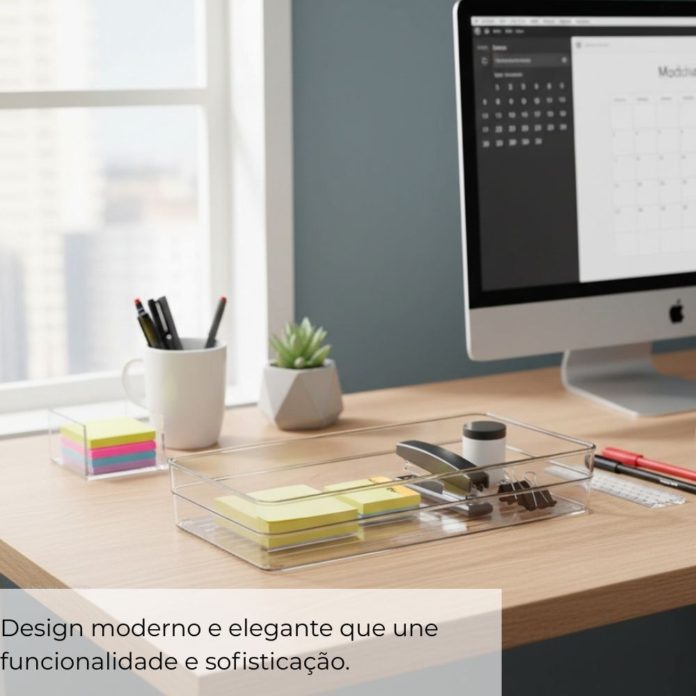 Características do Organizador de Acrílico Multiuso 30x15x5cm: - Material: Acrílico de alta qualidade e resistência, oferecendo durabilidade e transparência para fácil visualização do conteúdo. - Dimensões: 30x15x5 cm, tamanho ideal para gavetas, armários e geladeiras. - Versatilidade: Perfeito para armazenar utensílios de cozinha, alimentos, cosméticos, material de escritório, entre outros. - Design Elegante: Acabamento transparente e minimalista que se adapta a diferentes ambientes, proporcionando uma organização prática e sofisticada. - Fácil Limpeza: Superfície lisa que facilita a manutenção e conservação do produto. - Resistência: Estrutura sólida e robusta, garantindo longa vida útil. - Praticidade: Ideal para otimização de espaço, mantendo seus itens organizados de forma eficiente e acessível. Este organizador é a escolha ideal para quem busca funcionalidade, beleza e praticidade em um único produto.