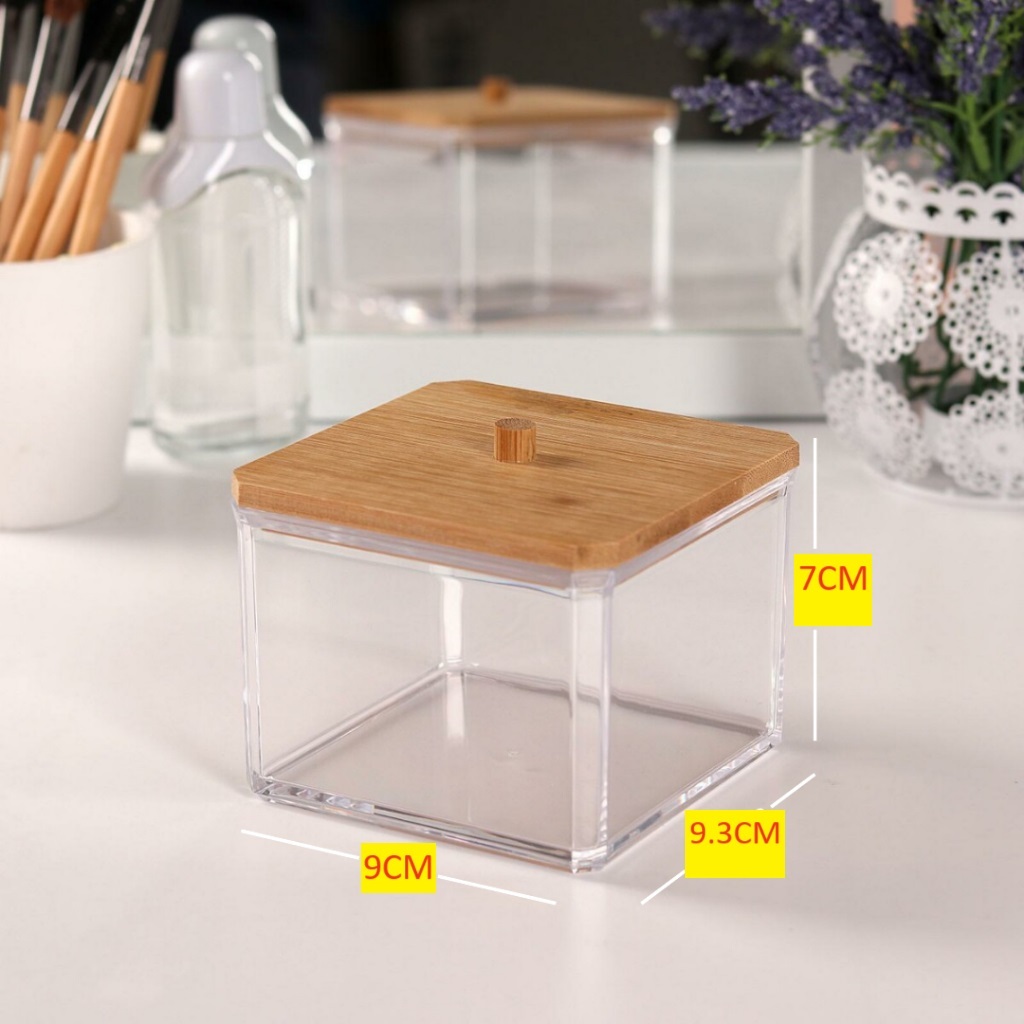 Organizador De Algodão Cotonetes Discos Acrílico Bambu Para Almofadas De Maquiagem Cosméticos