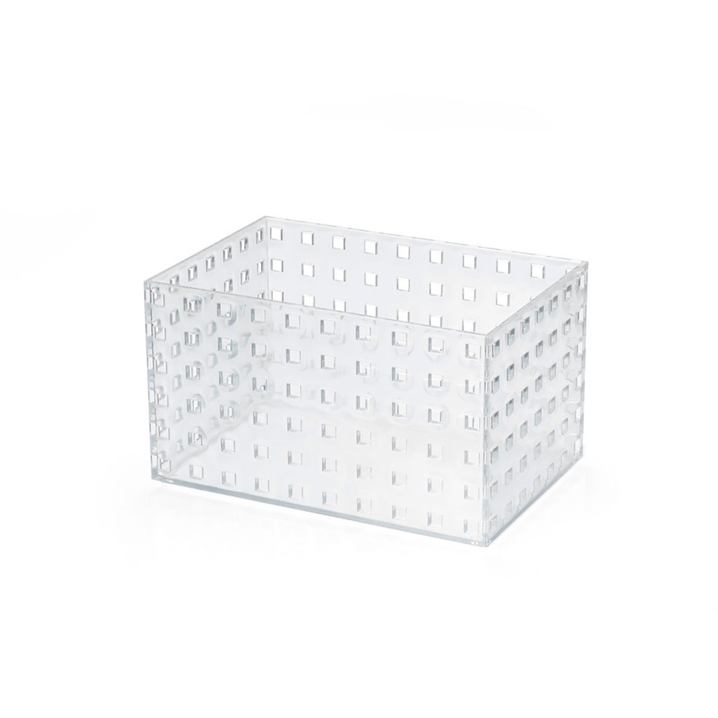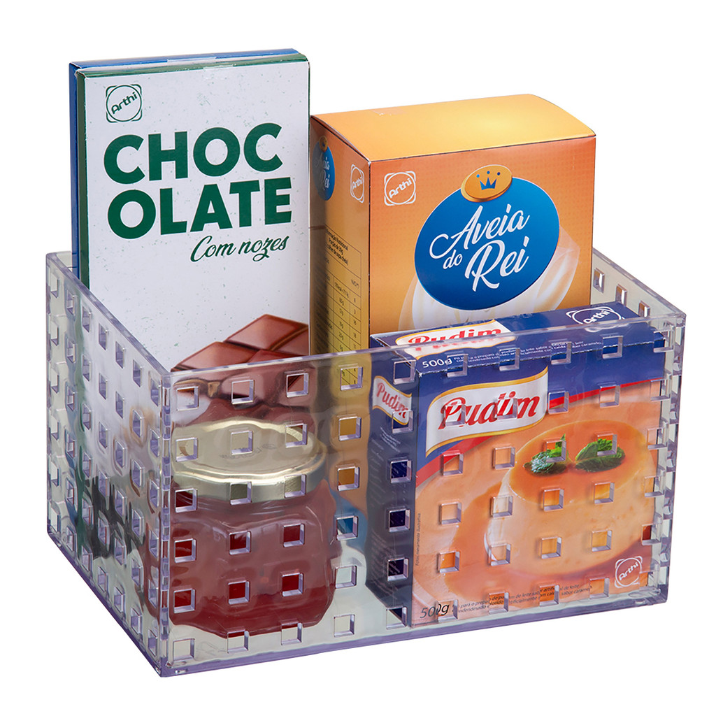 O Organizador de Armário 21cm Transparente - Arthi pode armazenar frutas, enlatados e embalagens variadas, facilitando a organização e otimização de espaços diversos, como gavetas, armários, geladeira e muito mais. Ele apresenta paredes vazadas que facilitam a circulação de ar; é feito em poliestireno, um termoplástico resistente, e tem capacidade para 3,3L.