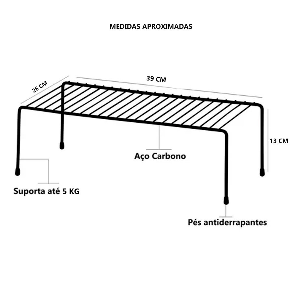 DESCRIÇÃO DO PRODUTO: Armazene o dobro de produtos nos armários utilizando o Organizador. Ele criar uma prateleira dentro da prateleira. Assim você ocupa aquele espaço que fica perdido no armário. E o melhor, com organização e segurança para louças, alimentos e outros objetos. CARACTERÍSTICAS TÉCNICAS: Conteúdo da Embalagem: 1 Organizador Para Armário G Dimensões Aproximadas do Produto: 13cm x 28cm x 39cm(Altura x Largura x Comprimento/Profundidade) Dimensões Aproximadas da Embalagem: 15cm x 26cm x 41cm(Altura x Largura x Comprimento/Profundidade) Material/Composição: Aço Carbono Marca: Mor Outras informações: As cores podem variar entre as imagens mostradas acima e o produto. Imagens meramente ilustrativas. Aviso: As informações e imagens divulgadas são de total responsabilidade do fabricante/fornecedor. Produto lacrado e disponível a pronta entrega para todo Brasil! APROVADO PELO INMETRO