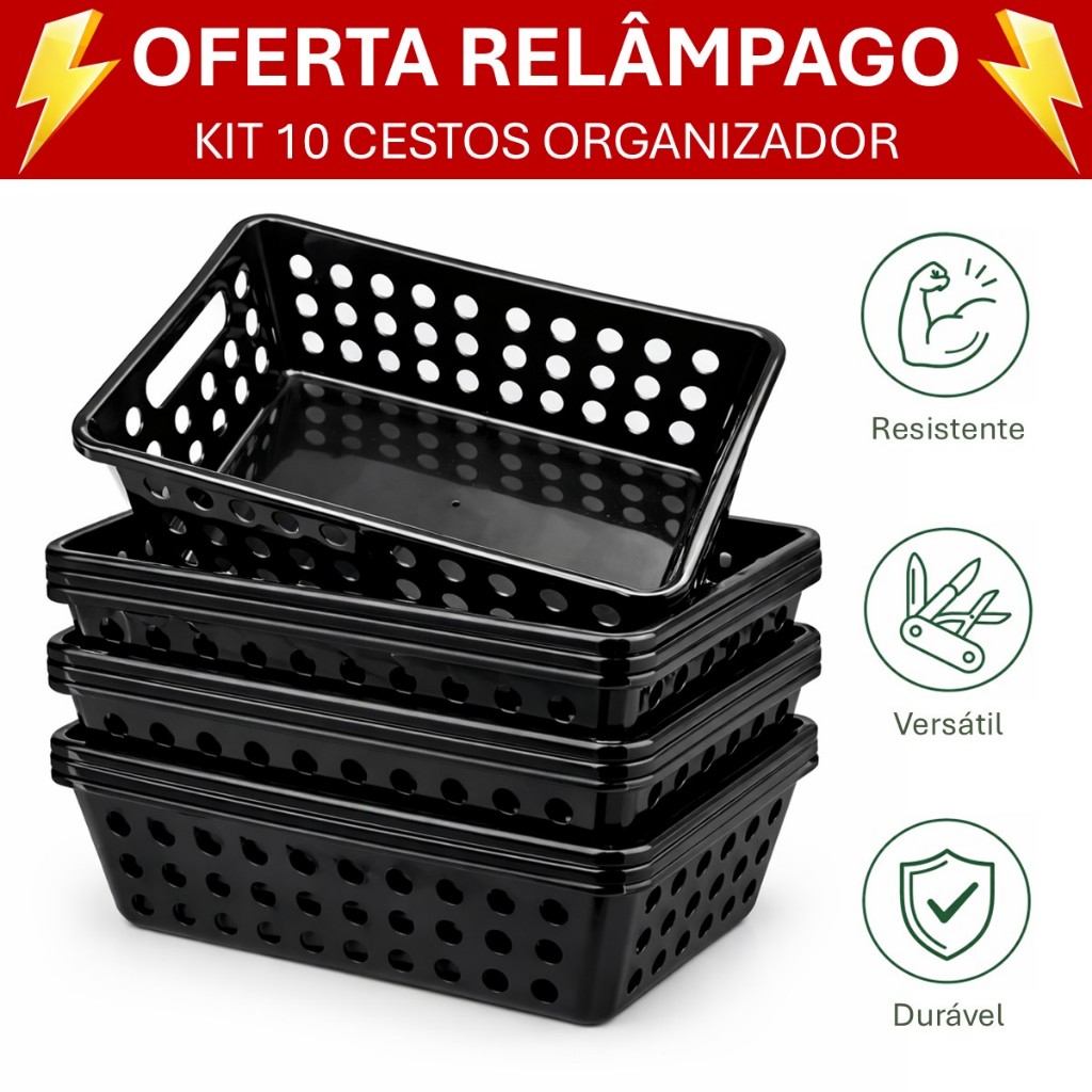 | Organizador de Armário Kit 10 Cestos Plástico Médio para Gaveta Coz... este produto | R$ 38,90 | 2% | 4.8/5 | 287 |