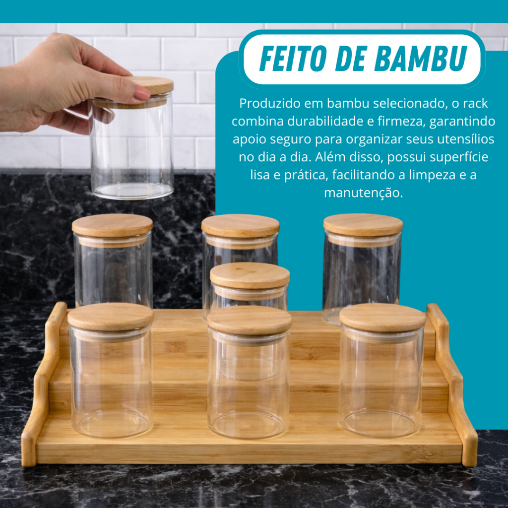 Suporte Organizador Retrátil para Temperos em Bambu – 3 Andares Mantenha seus temperos e condimentos sempre organizados com este elegante suporte organizador em bambu. Com design retrátil e formato em escada de três níveis, ele otimiza o espaço e facilita a visualização e o acesso aos potes. Fabricado em 100% bambu, material resistente e sustentável, o organizador alia funcionalidade e sofisticação, valorizando a decoração da sua cozinha enquanto mantém tudo em ordem. O sistema retrátil permite ajustar a largura conforme a necessidade, acomodando diferentes tamanhos de potes e se adaptando perfeitamente ao seu espaço. Características: Estrutura com 3 andares em formato de escada Design retrátil, ajustável de acordo com o espaço disponíve Ideal para organizar temperos, condimentos e potinhos Material ecológico, durável e fácil de limpar Dimensões: Fechado: 22 cm (C) x 22 cm (L) x 8,5 cm (A) Aberto: 36 cm (C) x 22 cm (L) x 8,5 cm (A) Cada andar: 7 cm de profundidade x 20,5 cm de largura, podendo chegar a 36,5 cm quando totalmente aberto Material: 100% Bambu Conteúdo da Embalagem: 1 Organizador de Temperos em Bambu
